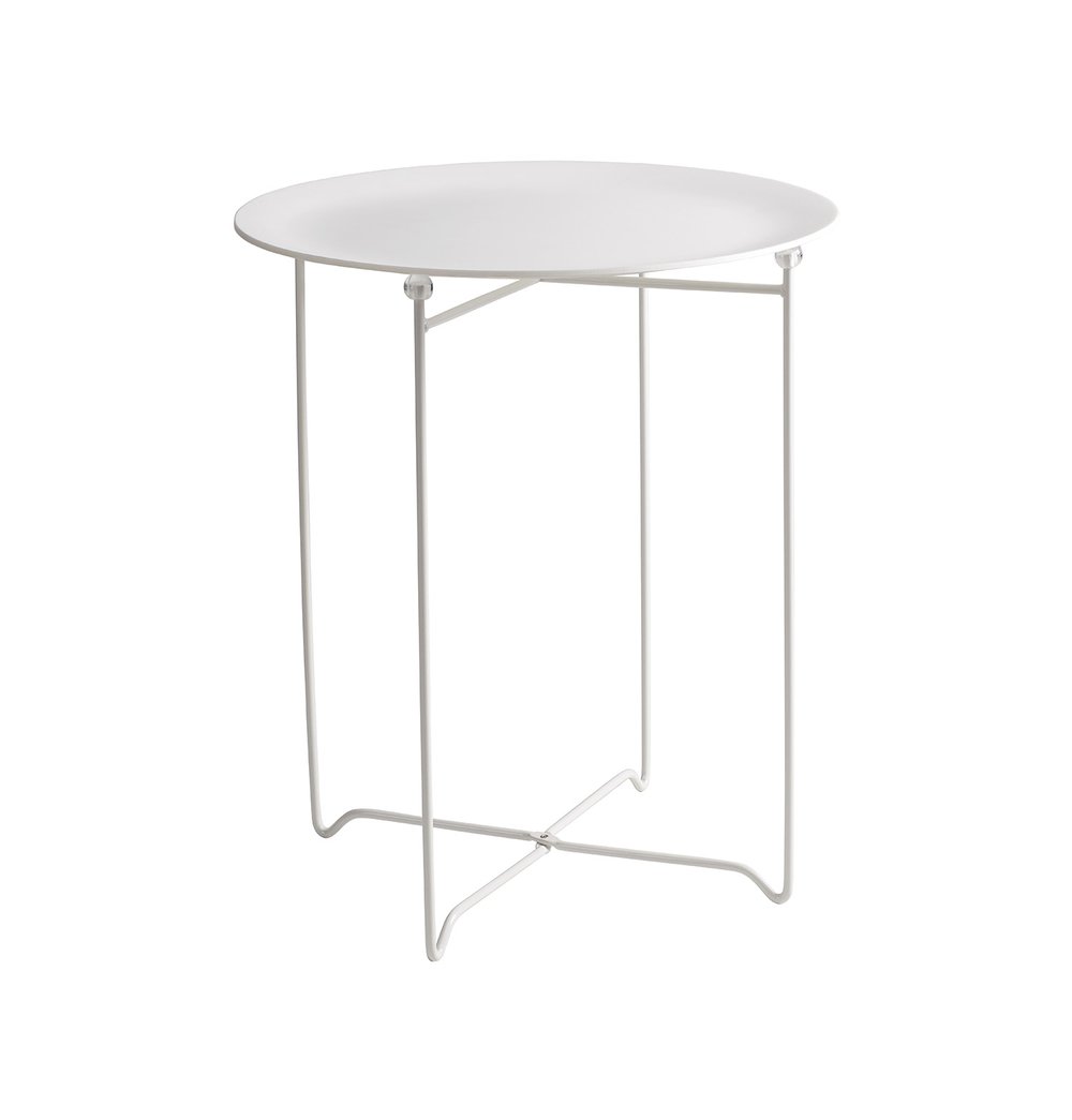 Xever Side Table Material: White plastic top with white metal legs Dimensions: W 48cm x D 48cm x H 52cmWhite Side Table Round