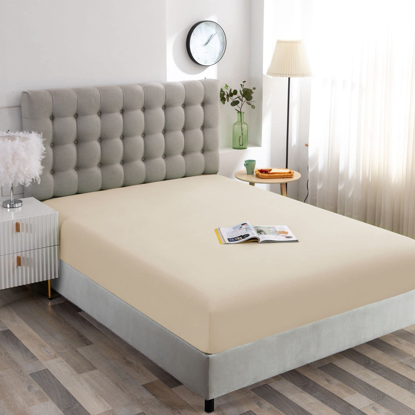 Ghooss Beige Full Fitted Sheet-Soft Microfiber Bottom Sheet For Bed-Deep Pocket Up To 14 Inche-Wrinkle Free And Stay In Place-1