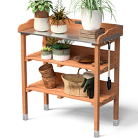 Description Our Outdoor Wooden Garden Potting Bench Aims To Save Gardner'S Knees, Back, Andany Other Body Part. The Wood Potting Bench Is Here To Take All The Aches And Pains Out Of Gardening. You Can Stand Comfortably To Do All Your Potting.Spacious Work Top Capable Of Various Garden Tasks And Two Lower Open Shelves For Storing Your Potting Tools, Seeds And So On. One Iron Hook On Side Forhanding Tools, Too. The Station Is Made Of Solid Wood And Structured Well. Itis Sturdy Enough To Meet Both Your Outdoor And Indoor Potting Job. Put It Atsmall Patios, Decks, Condos And Apartments, Or Anywhere You'D Like To Grow Vegetables, Herbs, Or Flowers And Enjoy Your Job. Feature High Quality And Brand New Solid Wood Construction, Durable And Sturdy Spacious Work Top Capable Of Various Garden Tasks With One Hook For Hanging Gardening Tools Three Shelf For Storing Potting Tools, Seeds And Other Tools Ergonomics Height Of Bench, Save Gardner'S Knees, Back, And Any Other Body Part Four Foots Packed By Galvanize To Protect The Wood Leg From Rotten Assemble Required Specifications Material: Chinese Fir Wood And Metal Sheet Overall Dimension: 30.0'X14.5'X35.0'(Lxwxh) Size Of Top Work Bench: 29'X14.0' (Lxw) Please Refer To The Picture To Get More Size Informationweight Capacity Of The Top:45Lbs Weight Capacity Of Per Tier:22Lbs Product Weight: 14.6Lbs Please Refer To The Picture To Get More Size Information Package Include: 1 X Garden Potting Bench