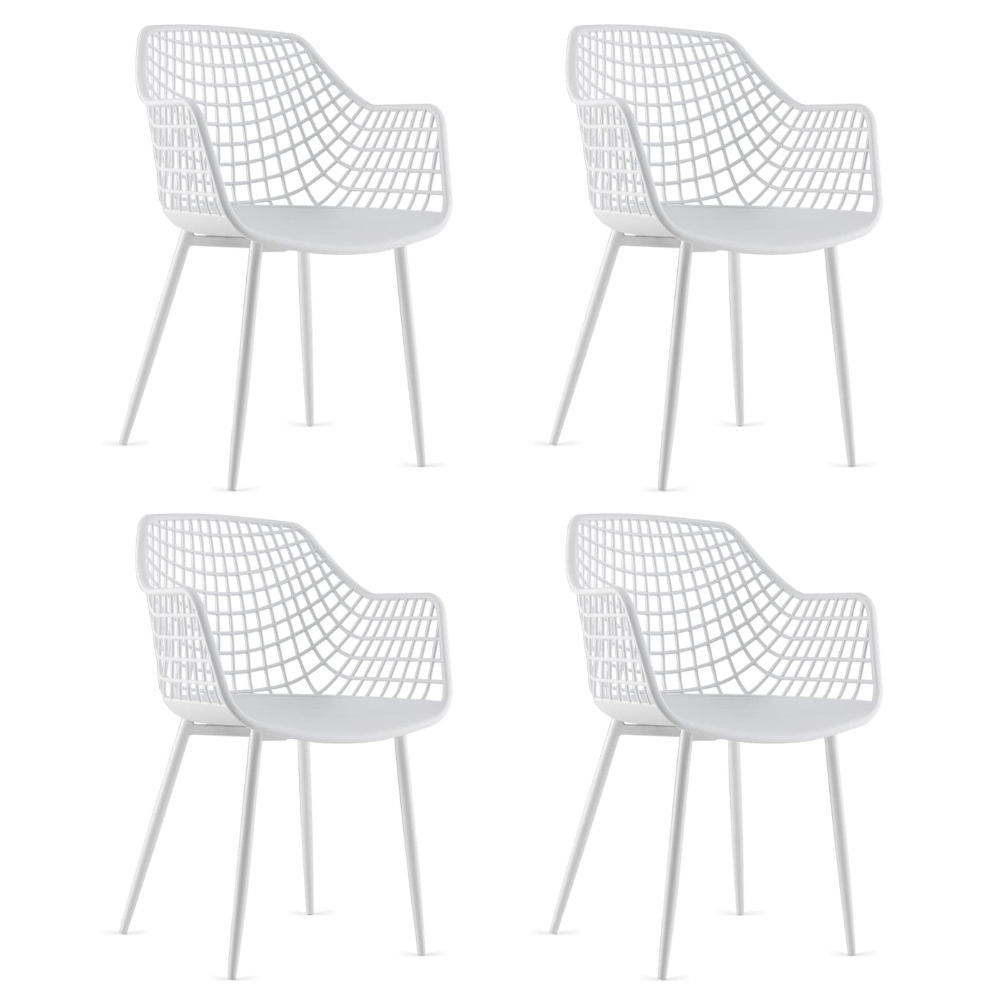 Giantex Modern Dining Chairs Set Of 4 - White Arm Chair With 15' High Backrest, Powder-Coated Metal Legs, Anti-Slip Foot Pads, Max Load 265 Lbs, Kitchen Dining Room