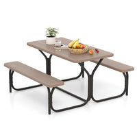 Giantex Picnic Table Bench Set Outdoor Camping All Weather Metal Base Wood-Like Texture Backyard Poolside Dining Party Garden Patio Lawn Deck Furniture Large Camping Picnic Tables For Adult