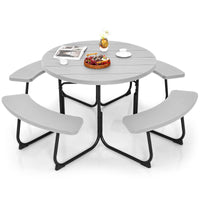 Giantex Picnic Table Set For Up To 8 Persons, Round Outdoor Table And Bench Set With Umbrella Hole, Hdpe Top & Metal Frame, 2000Lbs Capacity, Patio Table Bench Set For Deck Backyard Garden (Gray)
