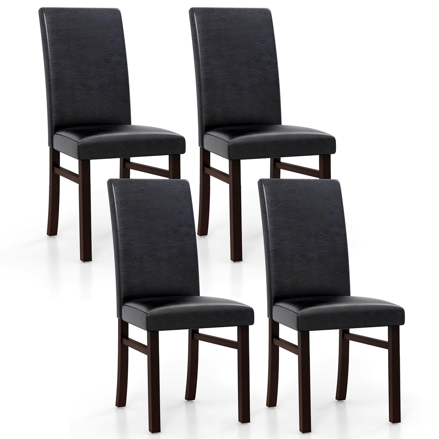 Giantex Pu Leather Dining Chairs Set Of 4, Upholstered Kitchen Chair With Solid Rubber Wood Frame, Armless High Back Dining Side Chairs With Cushion Seat, Modern Dining Room Chair, Black