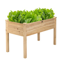 Description: Our Elevated Garden Bed Is Ideal For Organizing And Displaying Your Plants. Made Of High-Quality Natural Fir Wood, This Planter Bed Ensures Solid And Durable Structure For Long-Term Use. It Is Paired With Drainage Holes To Drain Out Excess Water Easily. This Raised Garden Bed Is Ample Enough To Cultivate Various Types Of Herbs, Vegetables And Flowers. Besides, It Is Designed In Suitable Height For Taking Care Of Plants Conveniently. In Addition To A Perfect Home Decoration, It Can Used In Your Garden, Patio, Backyard And More. Features: Natural Fir Wood Ensures Sturdiness And Durability Spacious Planting Area For Growing Vegetables, Fruits, Flowers, Etc. Drain Holes Allows Excess Water To Drain Out Ergonomic Height Is Friendly To Elderly Gardeners Perfect Decoration For Your Patio, Garden, Balcony, Etc Easy To Assemble With Instructions Specifications: Color: Natural Material: Fir Wood Overall Dimension: 49'Lx23'Wx30'H Product Weight:28Lbs Package Includes:1 X Planter Bed, 1 X User Guide