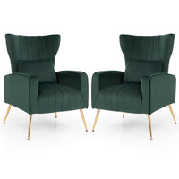 Description: Dive Into The Plush Embrace With Our Wingback Accent Armchair! Designed For Comfort, The Velvet Accent Chair Boasts An Ergonomic Wing Back And Humanized Lumbar Pillow. Made With Premium Dutch Velvet Fabric, It Marries Sophistication With Durability. Moreover, The High-Density Sponge And S-Shaped Springs Provide Long-Lasting Comfort. And The Lustrous Golden Metal Legs Are Not Only Stylish But Also Stable, Holding Up To 400 Lbs. Furthermore, The Elegant Outlook Adds A Timeless Touch To Your Living Room, Bedroom, Reception Room, Or Reading Nook. Simple Assembly Is Required, Which Saves Your Time And Energy. Features: Stylish Wing Back For Good Protection Of Your Spine Additional Lumbar Pillow For More Support For Your Waist Ergonomic Armrests And Spacious Seating Area For Comfort Luxurious Dutch Velvet Fabric For Softness And Elegance Resilient Sponge And S-Shaped Springs For Further Coziness Heavy-Duty Metal Legs With Adjustable Foot Pads For Stability An Ideal Companion For Reading, Chatting, Relaxing And More Suitable For Living Rooms, Bedrooms, Reception Rooms, Etc Easy And Quick Assembly To Save Your Time And Energy Specifications: Color: Green Materials: Dutch Velvet Fabric, Plywood, Sponge, Metal Product Dimension: 27' X 31.5' X 37.5' (W X D X H) Size Of Lumbar Pillow: 17' X 12' (L X W) Size Of Seat: 18' X 21' (W X D) Backrest Length: 22.5' Armrest Height: 23' Seat Height: 18.5' Net Weight: 31 Lbs Weight Capacity: 400 Lbs Package Includes: 2 X Accent Chair 1 X Instruction