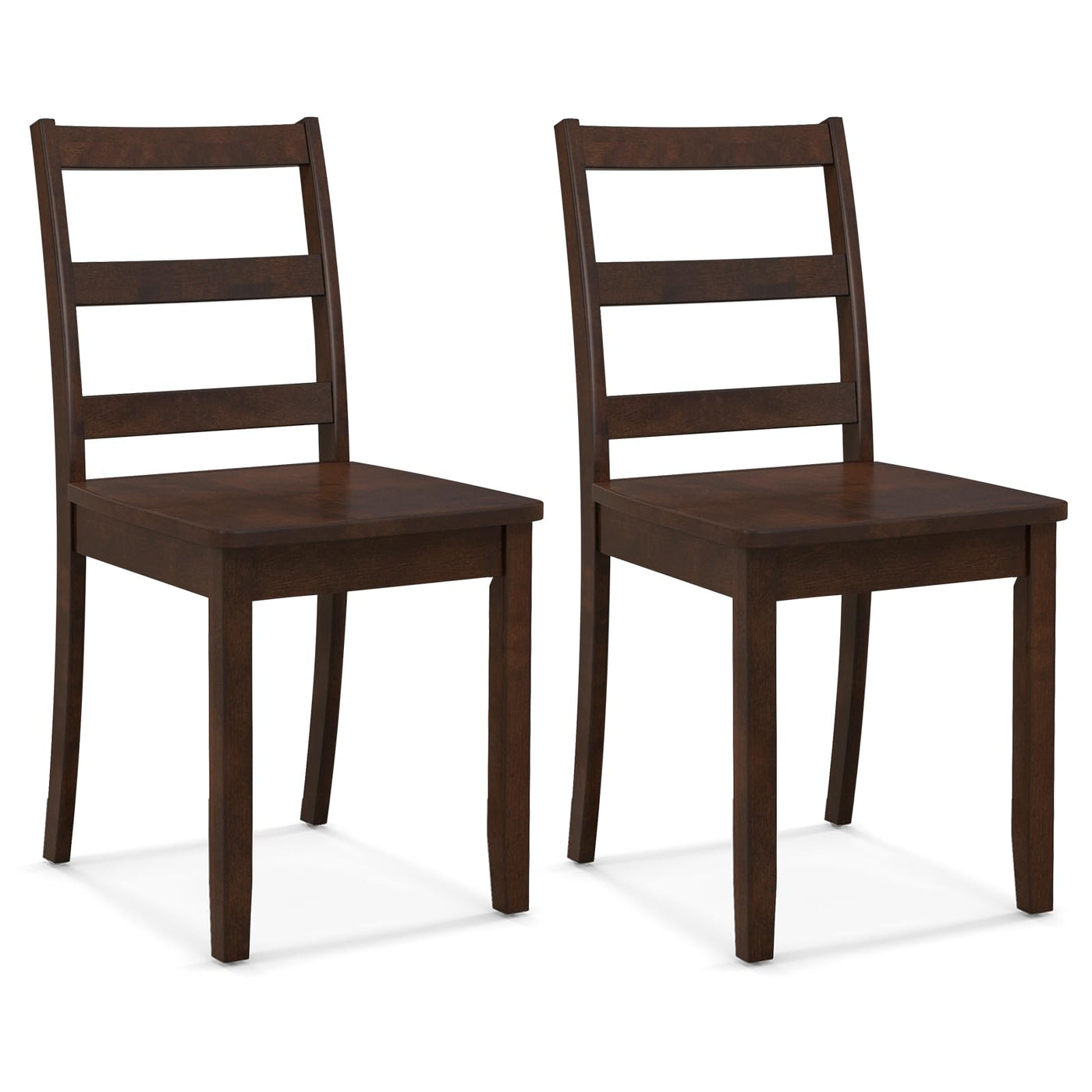 Description: Enjoy A Delicious Dinner With Our Dining Chairs Set! The Solid Rubber Wood Legs Offer Sturdy Support So That Each Chair Holds Up To 400 Lbs. Besides, The Rounded Edges And Burr Free Surface Ensures A Cozy Using Experience. And The Ladder Back As Well As The Smooth Seat Render You Comfortable While Sitting On The Dining Chair. Additionally, The Equipped Non-Slip Foot Pads Prevent The Floor From Being Scratched. Installation Is Just A Breeze With Clear Instruction. Furthermore, The Waterproof Surface Allows Easy Maintenance. Features: Solid Rubber Wood Legs For Overall Steadiness Each Chair Can Support Up To 400 Lbs Ladder Back And Large Seat For Comfortable Use Anti-Slip Foot Pads For Floor Protection Modern And Minimalist Style Combines Function With Aesthetics Widely Applied In The Dining Room, Living Room, Restaurant, Etc Simple Installation Required Easy To Clean With Soft Rags Specifications: Color: Walnut Material: Rubber Wood, Mdf, Plywood Overall Dimension: 16' X 16' X 33.5' (L X W X H) Seat Height: 18' Total Net Weight: 26 Lbs Weight Capacity Of Each Chair: 400 Lbs Package Includes: 2 X Chairs 1 X Instruction