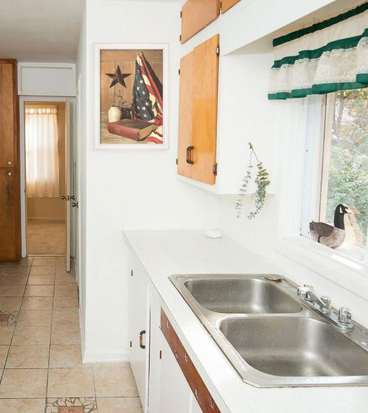 Unique and decorative, this god and country 4 white framed print wall art will leave a lasting impression. This print is a visual artistic expression that allows you to decorate your space in restyle. Made for you on paper, this hanging accent will be a trendy and fashionable way to dress your walls. Adding this hanging wall art to make your room feel more finished and attractive. Instantly liven up your space with this art that brings color to your space. walls. 21' H x 15' W x 1' D