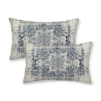 Gohdiwh Boho Lumbar Pillow Covers 12X20 Set Of 2, Ethnic Design Decorative Throw Pillows Linen Blue White Carpet Pattern Farmhou