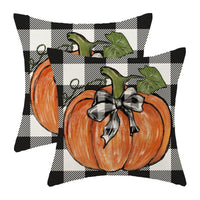 Gohdiwh Fall Decor Pillow Covers 18X18 Set Of 2, Buffalo Plaid Orange Pumpkin Pattern Decorative Throw Pillows Linen Autumn Than