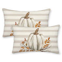 Gohdiwh Fall Pillow Covers 12X20 Set Of 2 Pumpkin Leaf Branch And Stripes Fall Decor Pillowcase Linen Autumn Thanksgiving Decora