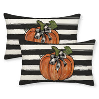 Gohdiwh Fall Pillow Covers 12X20 Set Of 2 Pumpkin Maple Leaves And Stripes Fall Decor Pillowcase Linen Autumn Thanksgiving Decor
