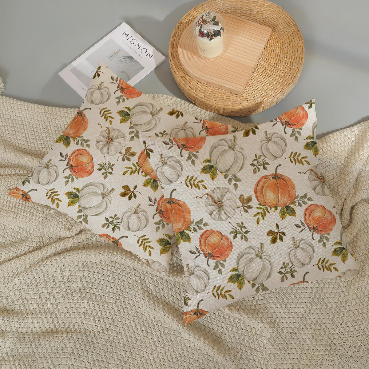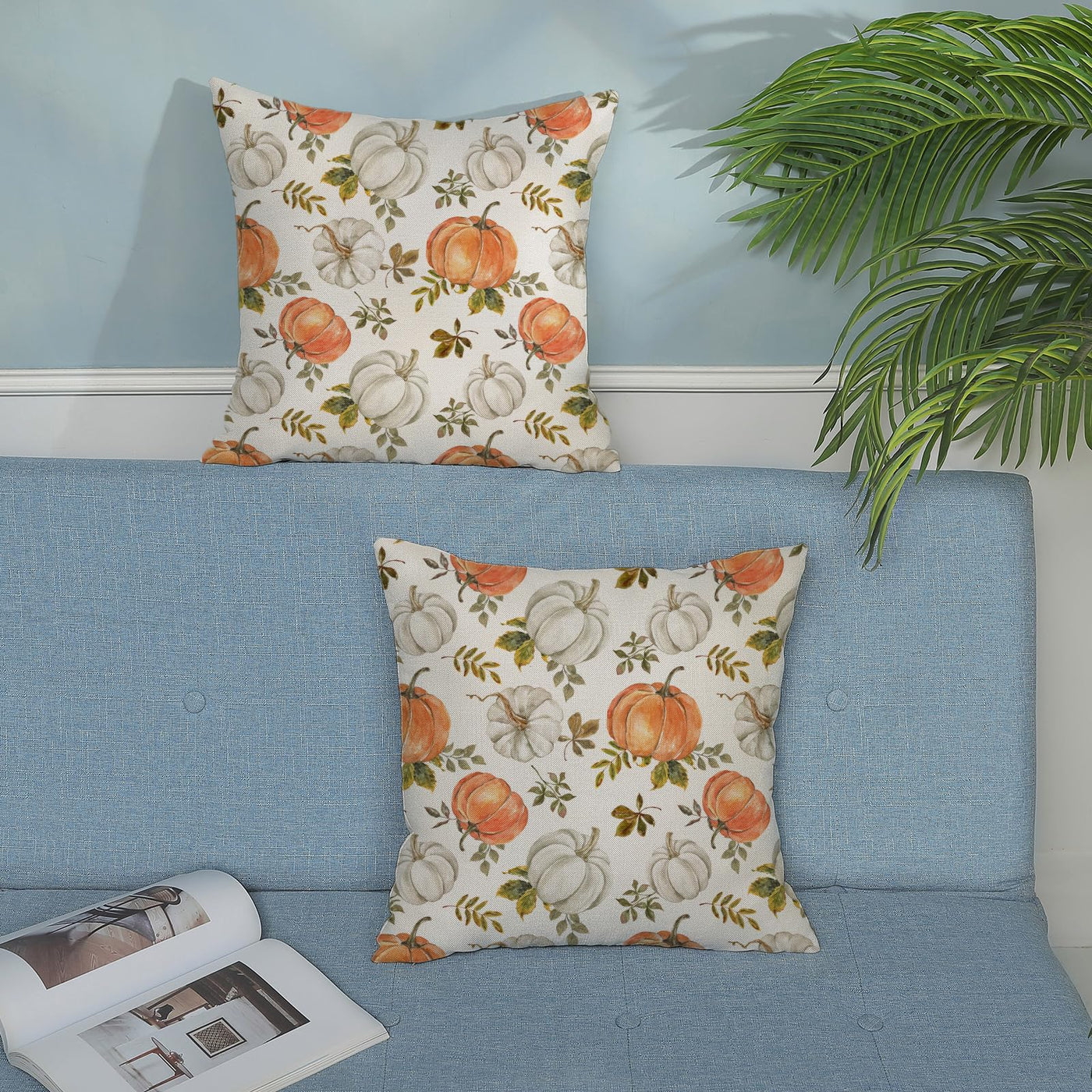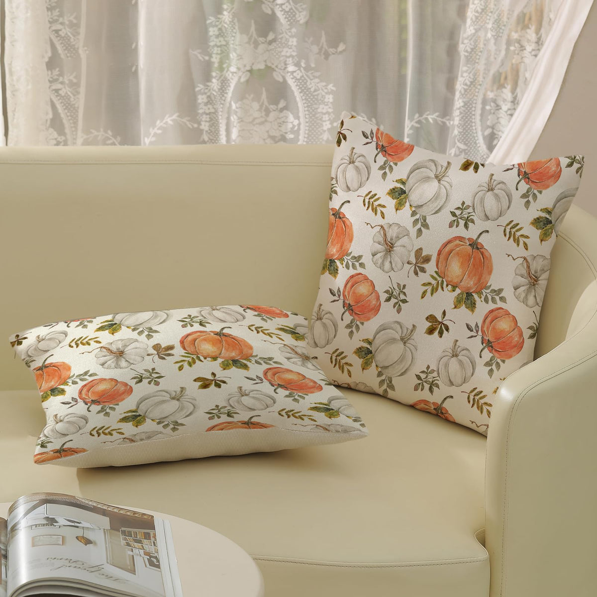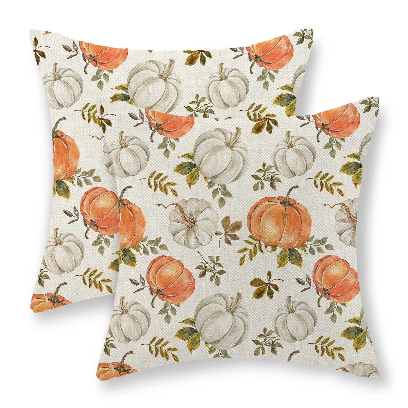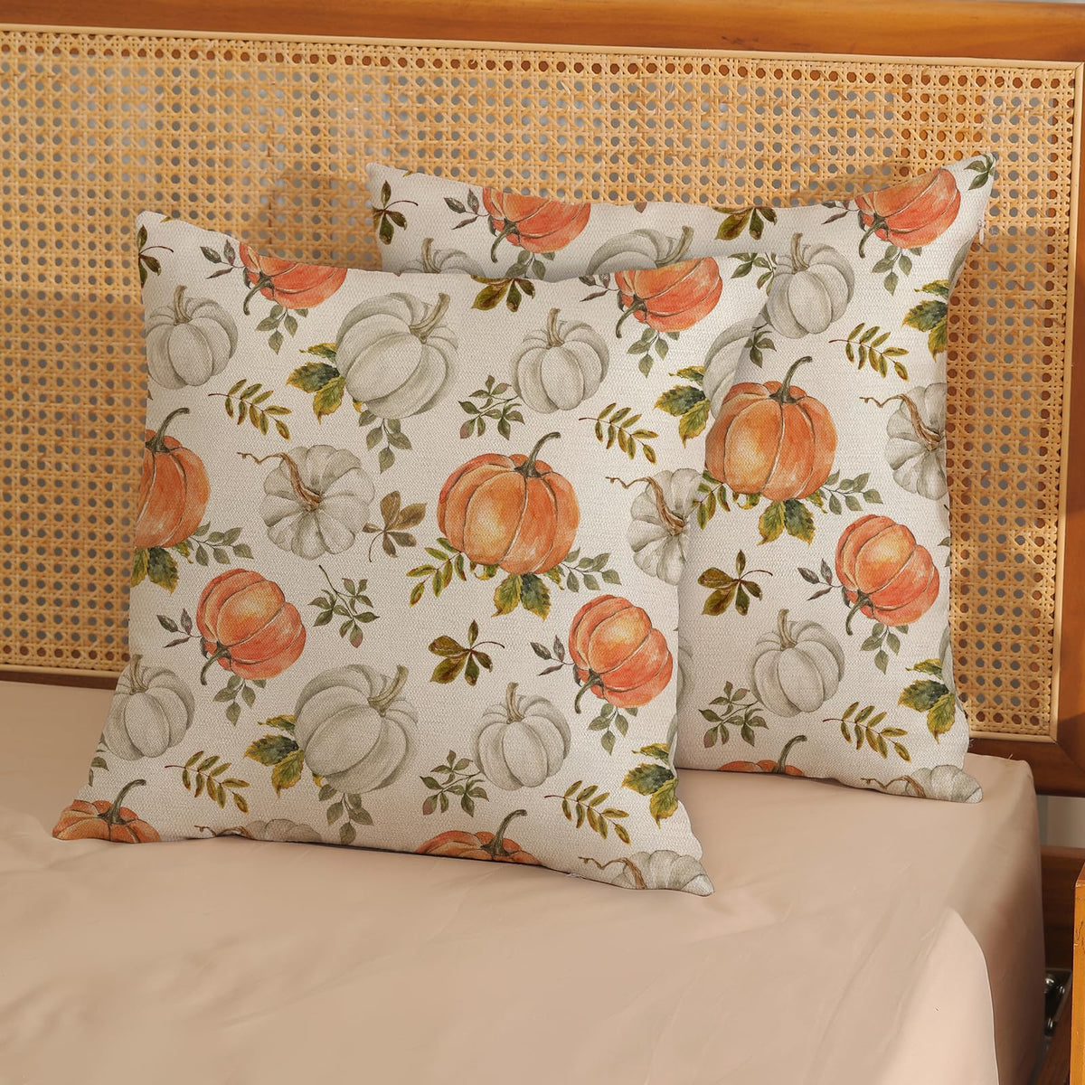 Gohdiwh Fall Pillow Covers 18X18 Inch Set Of 2 White Orange Pumpkin Pillowcase Thanksgiving Fall Decor Outdoor Throw Pillow Cove