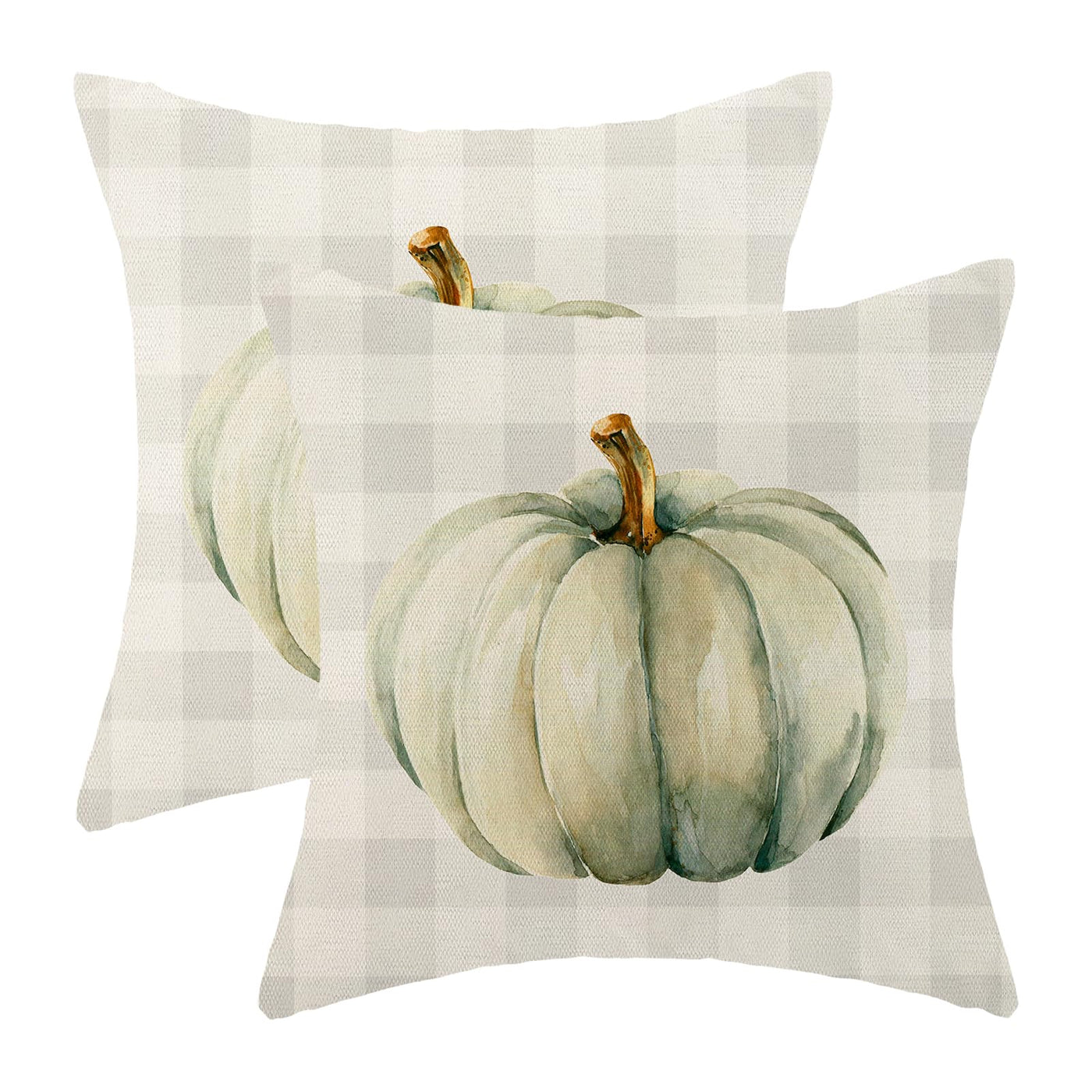 Gohdiwh Fall Pillow Covers 18X18 Set Of 2 Cream Pumpkin And Buffalo Plaid Fall Decor Pillowcase Linen Autumn Thanksgiving Decora