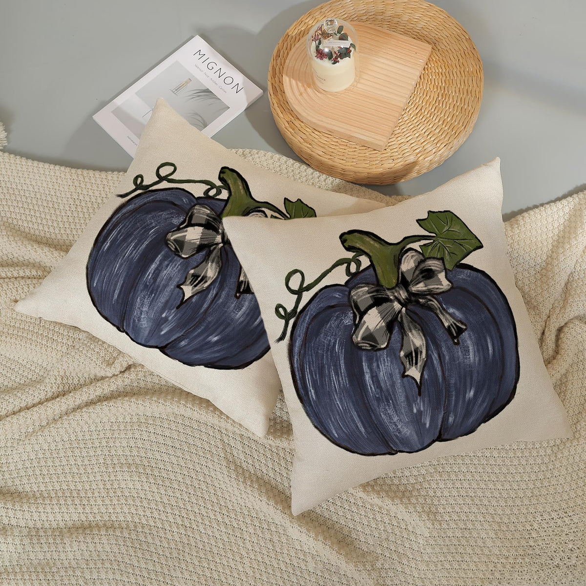 ------------------------------------------ Hello! Welcome To Xinzhifa Colorlife ------------------------------------------ A Great Addition To Your Fall Decor Fall Is Here, And Our Hearts Are Full Of Warm Feelings. If You Also Want To Add Some Chic Elements To Your Home This Autumn, You Might As Well Buy Our Set Of Fall Pillowcases. ?Material Our Fall Pillow Covers Made From 100% Natural Linen, An Extremely Durable, Breathable, Moisture-Wicking Natural Fiber. ?Size Pumpkin Throw Pillow Covers 18X18 Inches (45 X 45 Cm). ?Packaging Set Of 2 Unpadded Throw Pillowcases. ?Pattern Design To Welcome The Arrival Of Fall, This Outdoor Cushion Covers Is Designed With Blue Pumpkin, The Colors Are Bright And Eye-Catching, It Can Not Only Be Used As A Couch Pillows Decoration And Fall Home Decor, But Also A Great Gift For Thanksgiving Day, Halloween For Your Family, Lover Or Friends. Bringing You A Strong Autumn Atmosphere. ? Decoration Application Navy Blue Pumpkin Pillows Can Be Used In Courtyard, Garden, Bench, Sofa, Bed, Car, Office. They Can Add Color To A Home Space And Match With Other Furniture And Decorations To Create A Warm Atmosphere. ?Quality Assurance Are You Worried About Color Difference, Quality And Workmanship? We Take The Quality And Workmanship Of Our Products Very Seriously. In Order To Ensure Product Quality, We Are Very Strict In Material Selection And Only Choose High-Quality Fabrics And Wires. During The Production Process, We Strictly Carry Out The Quality Inspection Of Each Process In Accordance With The Standards To Ensure Color Fastness And Durability. In This Autumn, Let Us Go One Step Further On The Road Of Building A Beautiful Home, And Let Every Corner Be Filled With Your Heart. Come To Our Xinzhifa Pillowcase Shop And Explore New Ideas For Home Living With Us.