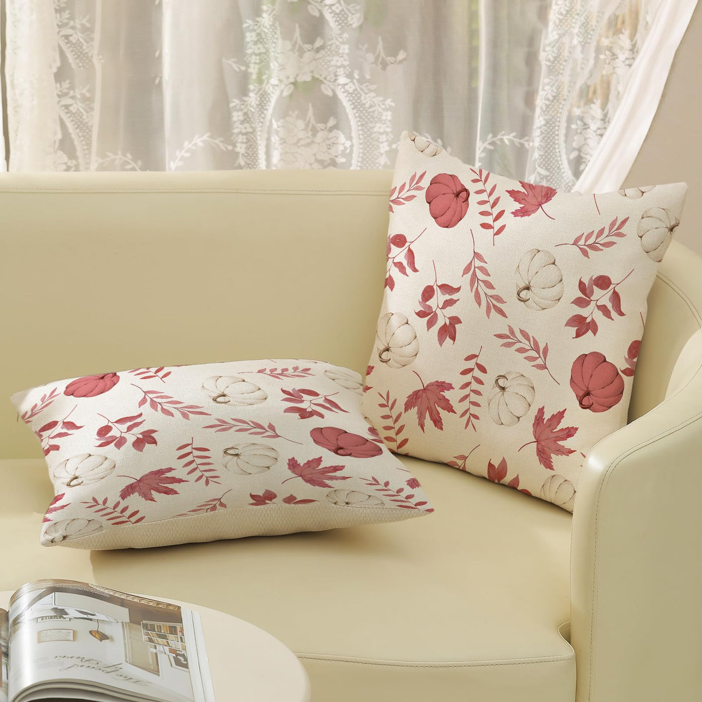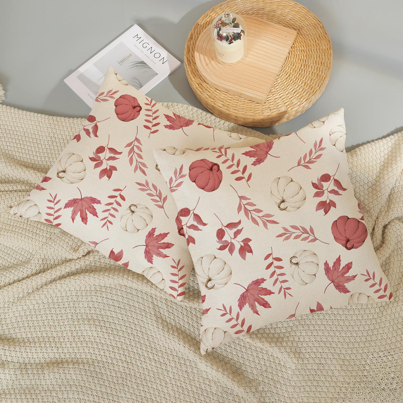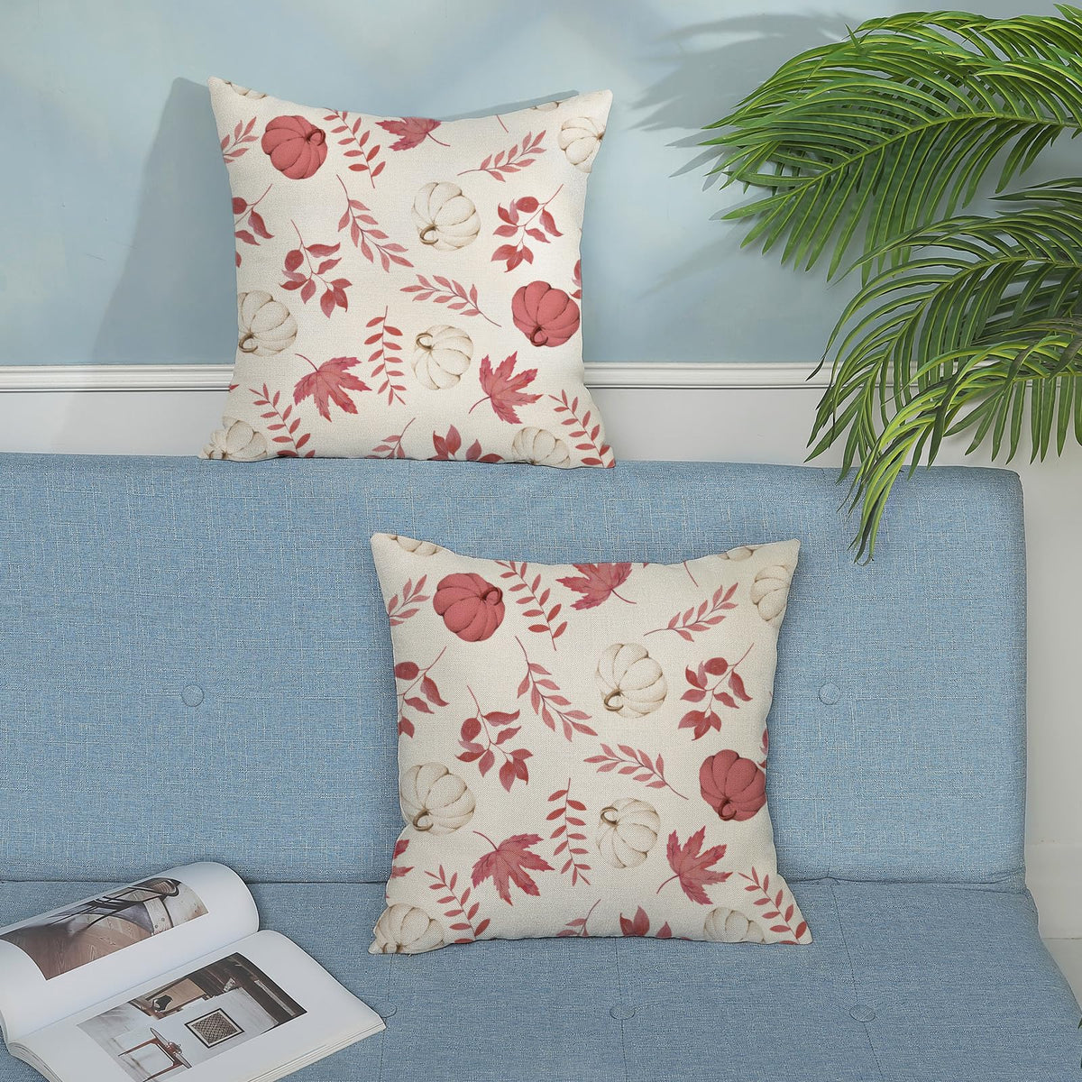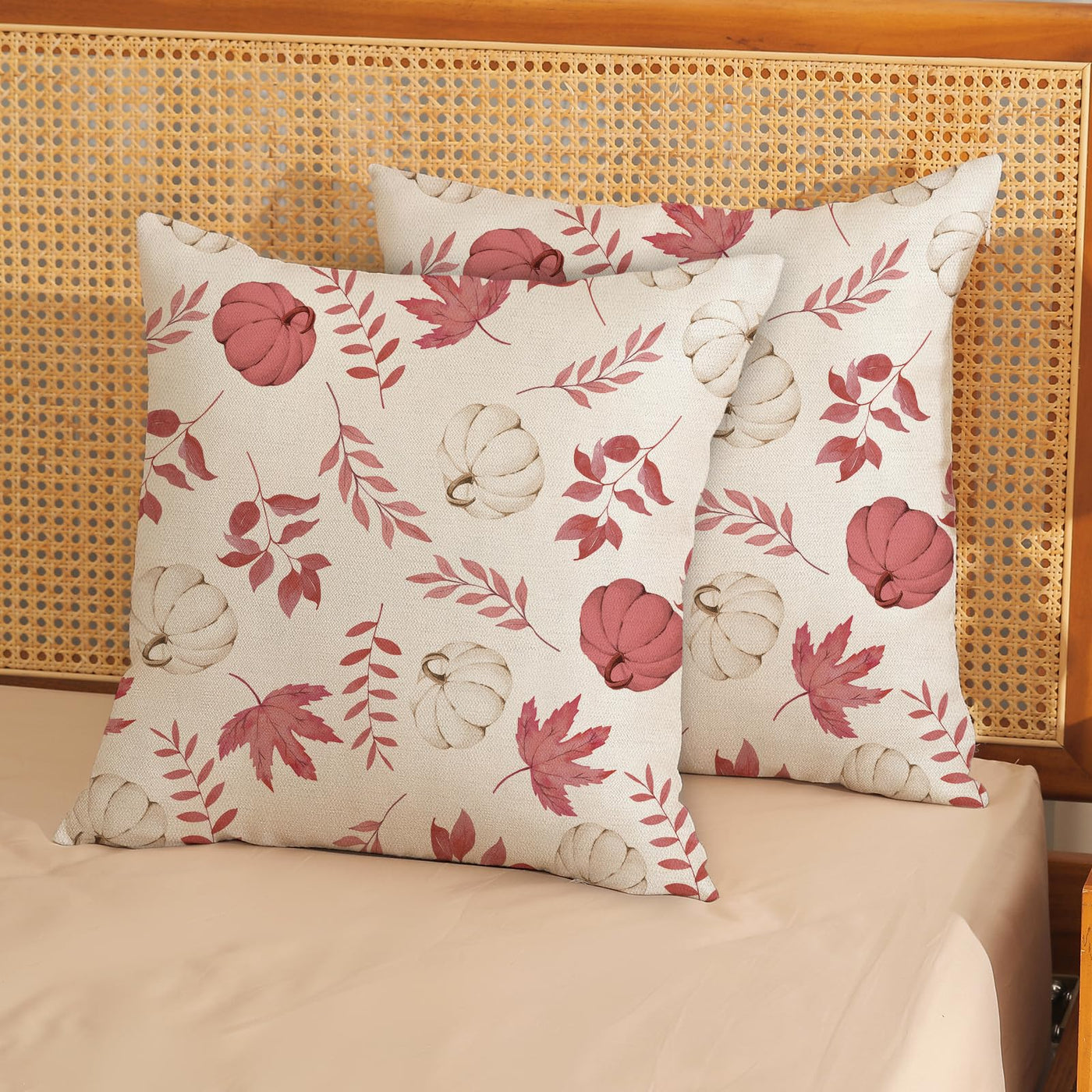 Gohdiwh Fall Pillow Covers 18X18 Set Of 2 Pink Pumpkin Maple Leaf Fall Decor Pillowcase Autumn Harvest Thanksgiving Decorations