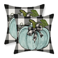 Gohdiwh Fall Pillow Covers 18X18 Set Of 2 Teal Blue Pumpkin Buffalo Plaid Fall Decor Pillowcase Autumn Thanksgiving Decorative O