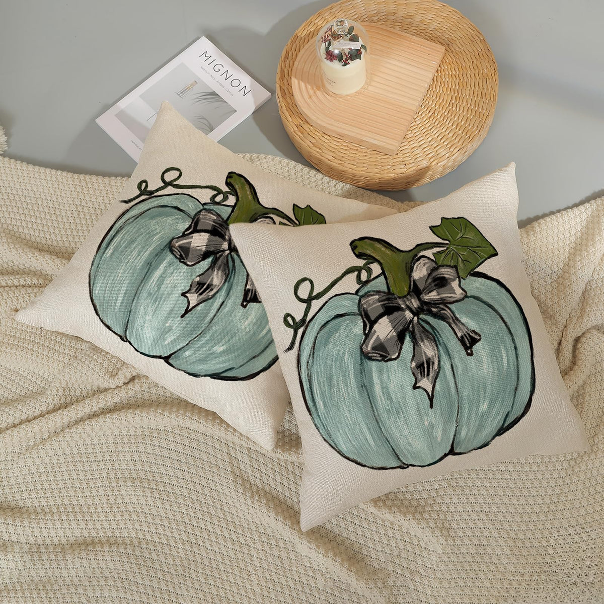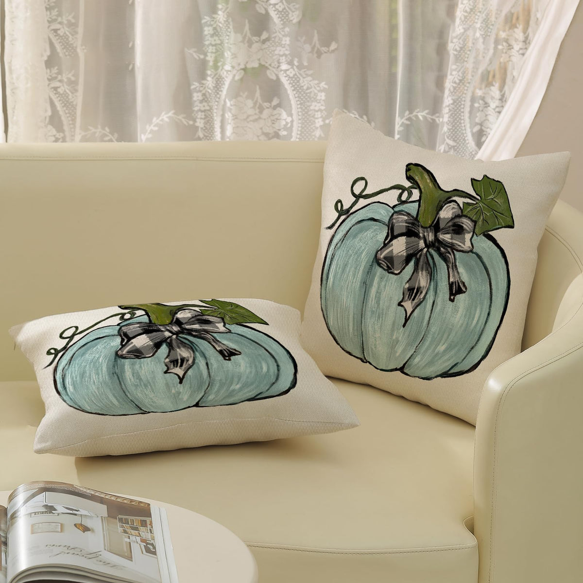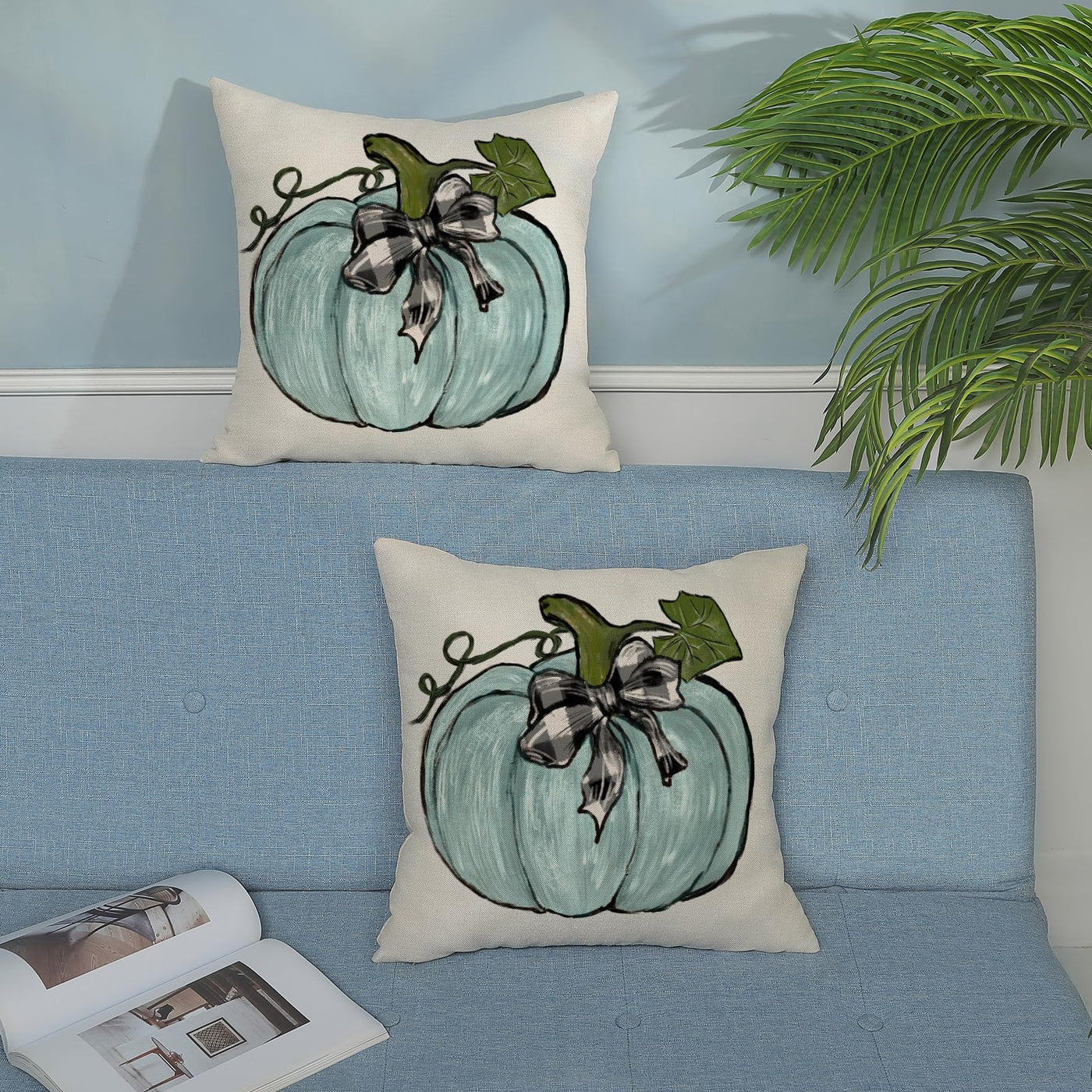 ------------------------------------------ Hello! Welcome To Xinzhifa Colorlife ------------------------------------------ A Great Addition To Your Fall Decor Fall Is Here, And Our Hearts Are Full Of Warm Feelings. If You Also Want To Add Some Chic Elements To Your Home This Autumn, You Might As Well Buy Our Set Of Fall Pillowcases. ?Material Our Fall Pillow Covers Made From 100% Natural Linen, An Extremely Durable, Breathable, Moisture-Wicking Natural Fiber. ?Size Pumpkin Throw Pillow Covers 18X18 Inches (45 X 45 Cm). ?Packaging Set Of 2 Unpadded Throw Pillowcases. ?Pattern Design To Welcome The Arrival Of Fall, This Outdoor Cushion Covers Is Designed With Teal Pumpkin, The Colors Are Bright And Eye-Catching, It Can Not Only Be Used As A Couch Pillows Decoration And Fall Home Decor, But Also A Great Gift For Thanksgiving Day, Halloween For Your Family, Lover Or Friends. Bringing You A Strong Autumn Atmosphere. ? Decoration Application Teal Blue Pumpkin Pillows Can Be Used In Courtyard, Garden, Bench, Sofa, Bed, Car, Office. They Can Add Color To A Home Space And Match With Other Furniture And Decorations To Create A Warm Atmosphere. ?Quality Assurance Are You Worried About Color Difference, Quality And Workmanship? We Take The Quality And Workmanship Of Our Products Very Seriously. In Order To Ensure Product Quality, We Are Very Strict In Material Selection And Only Choose High-Quality Fabrics And Wires. During The Production Process, We Strictly Carry Out The Quality Inspection Of Each Process In Accordance With The Standards To Ensure Color Fastness And Durability. In This Autumn, Let Us Go One Step Further On The Road Of Building A Beautiful Home, And Let Every Corner Be Filled With Your Heart. Come To Our Xinzhifa Pillowcase Shop And Explore New Ideas For Home Living With Us.