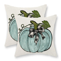 Gohdiwh Fall Pillow Covers 18X18 Set Of 2 Teal Blue Pumpkin Leaves Fall Decor Pillowcase Autumn Harvest Thanksgiving Decorative