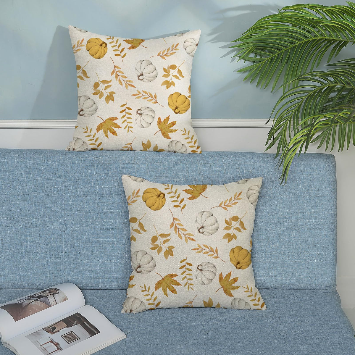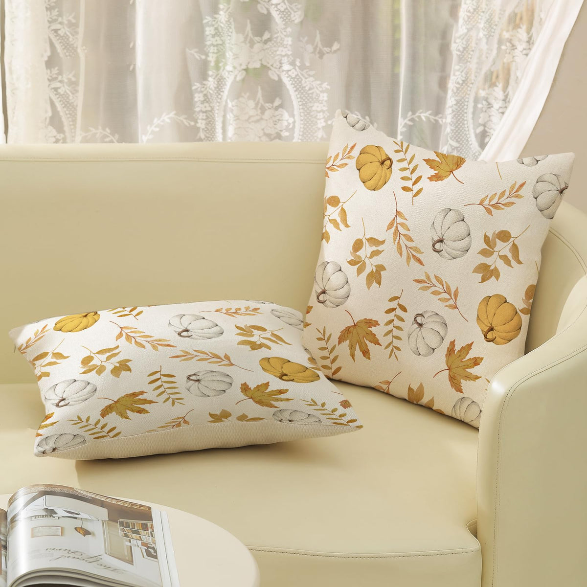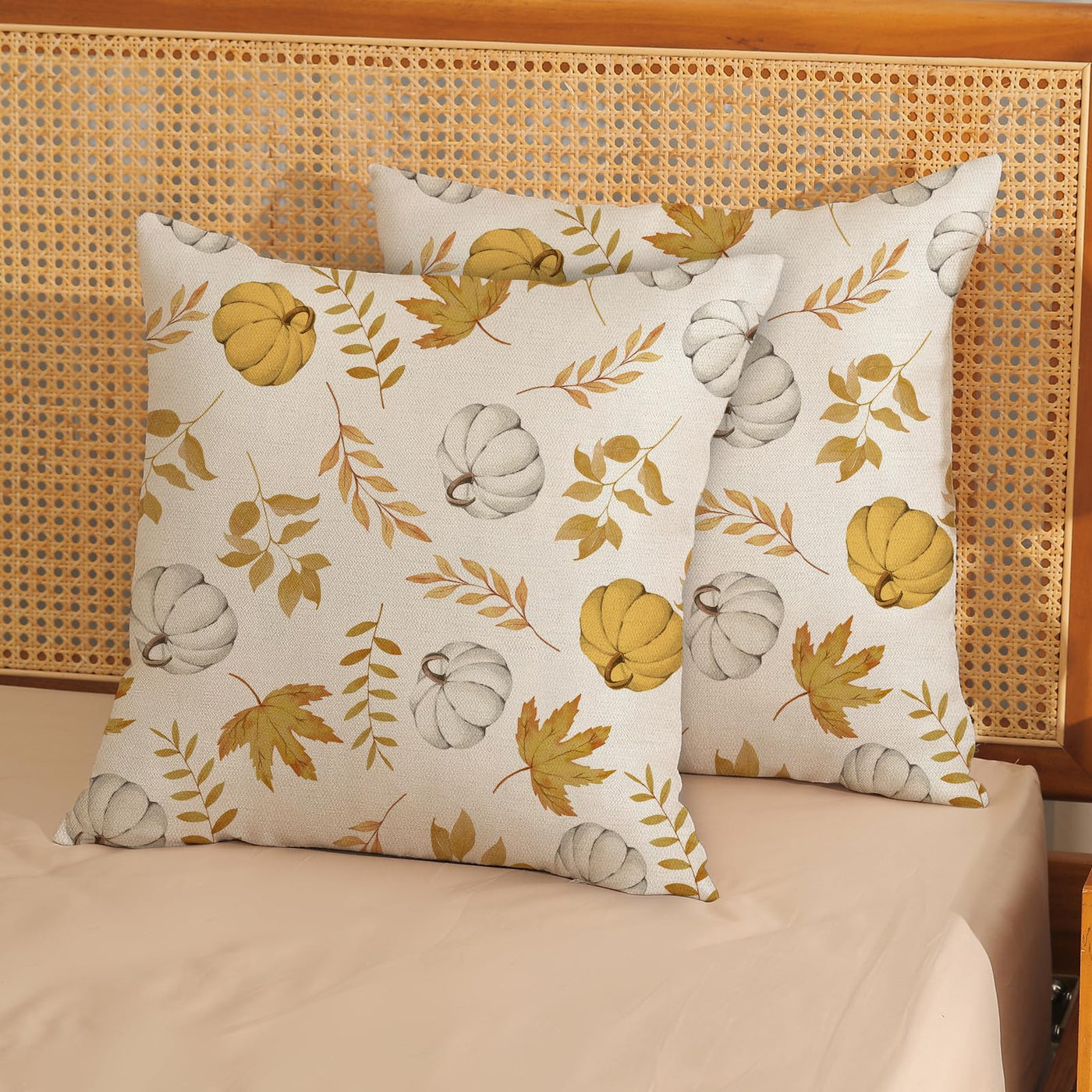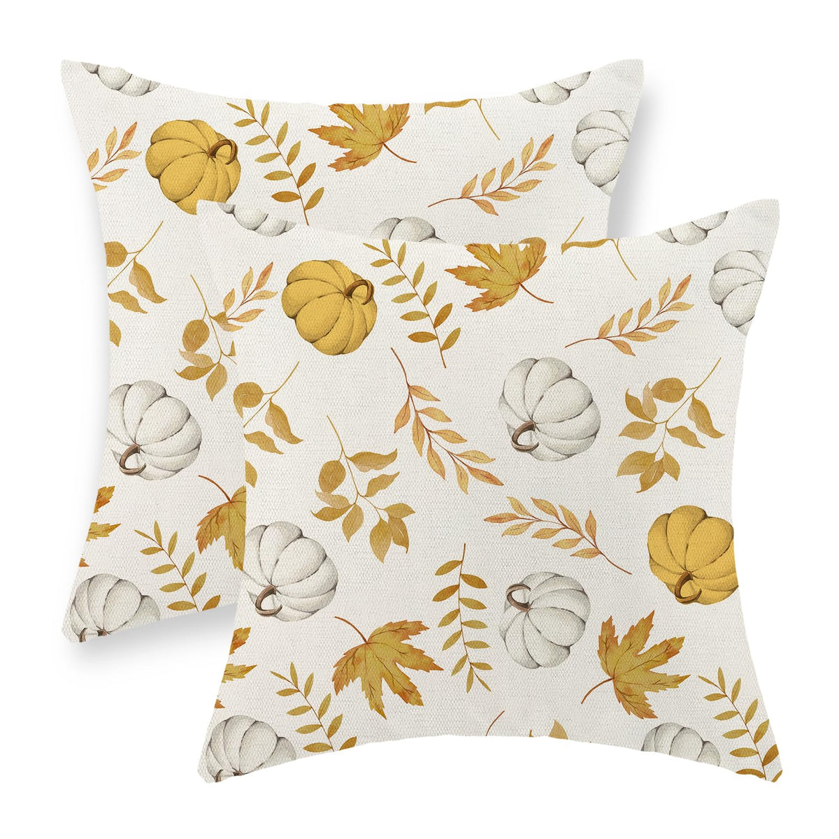 Gohdiwh Fall Pillow Covers 18X18 Set Of 2 Yellow White Pumpkin Maple Leaf Pillowcase Autumn Thanksgiving Decorations Outdoor Thr