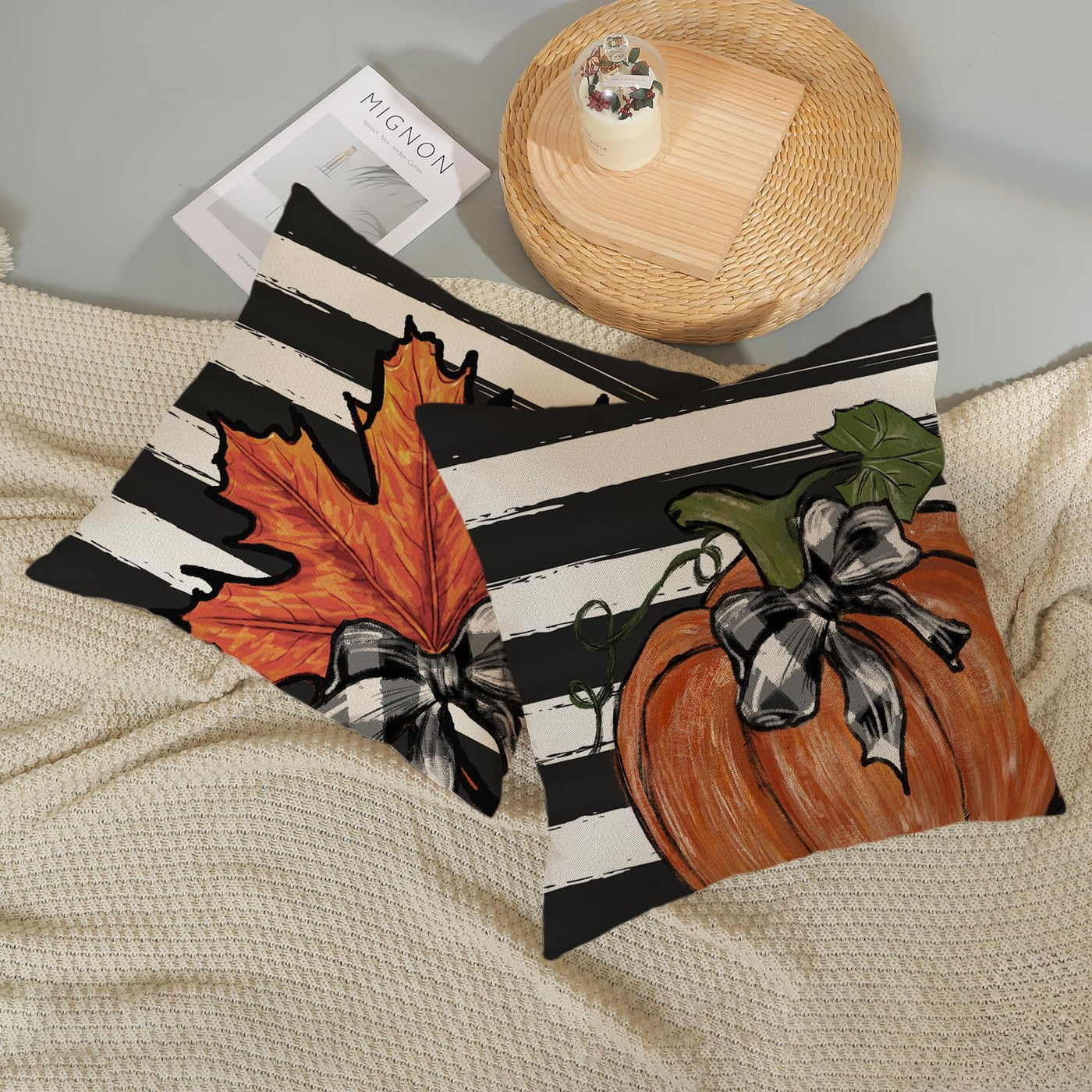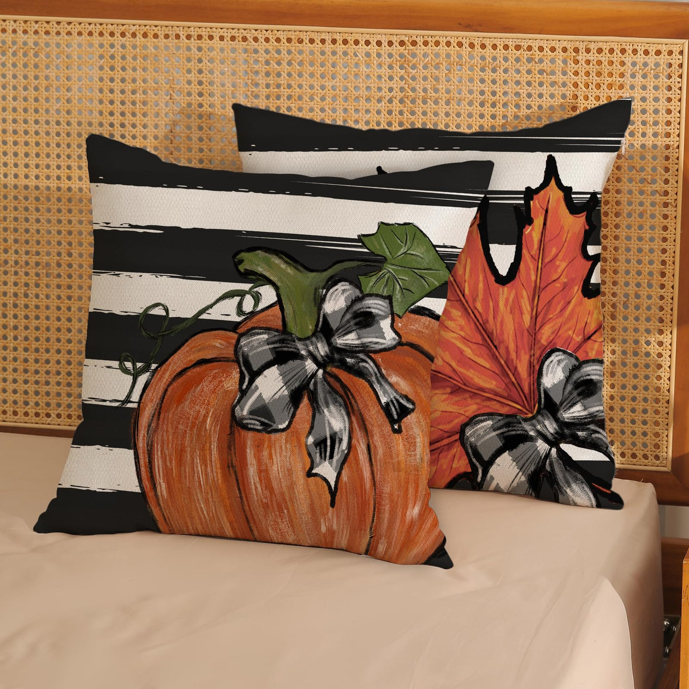 Gohdiwh Fall Pillow Covers 20X20 Set Of 2 Orange Pumpkin Maple Leaves Stripes Fall Decor Pillowcase Autumn Harvest Decorative Ou
