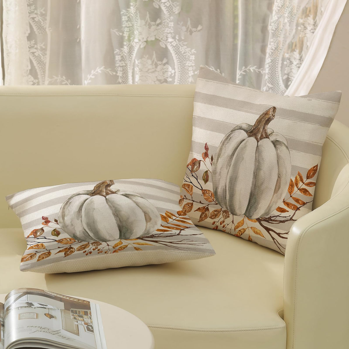 Gohdiwh Fall Pillow Covers 24X24 Set Of 2 Pumpkin Leaf Branch And Stripes Fall Decor Pillowcase Linen Autumn Thanksgiving Decora