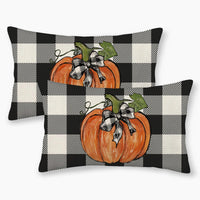 Gohdiwh Fall Pillow Covers12X20 Set Of 2 Pumpkin Maple Leaves And Buffalo Plaid Fall Decor Pillowcase Linen Autumn Thanksgiving