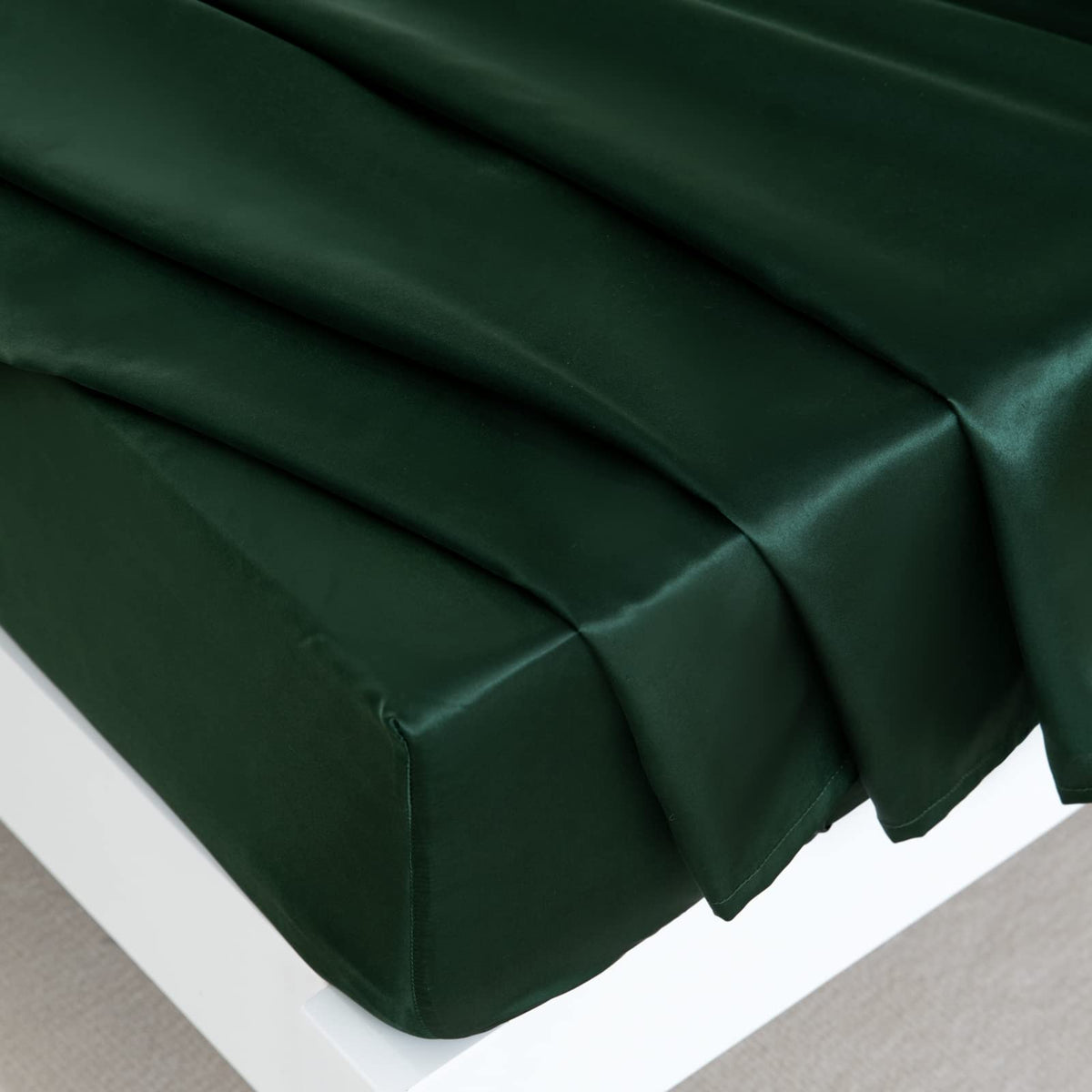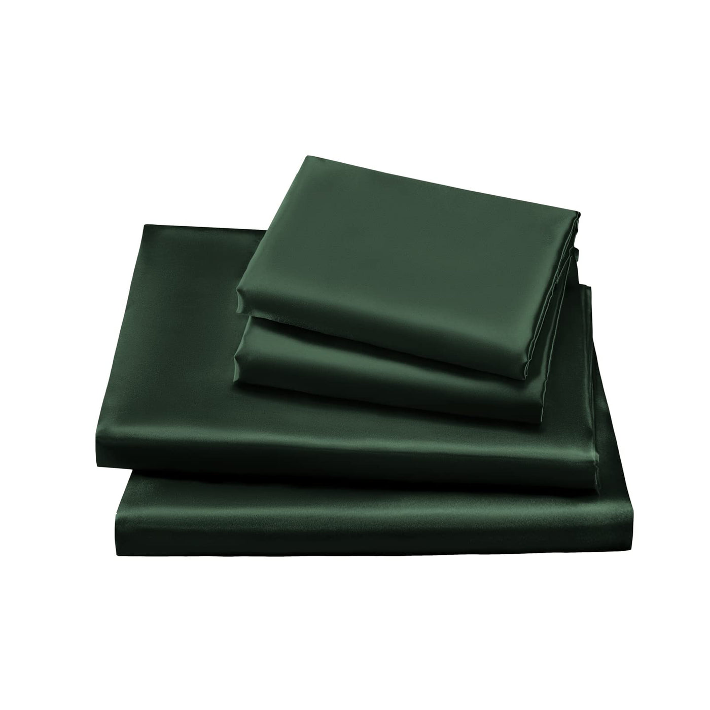 Golal Satin Sheets California King Size - 4 Pieces Luxury Silky Soft Bed Sheets, Wrinkle-Free Dark Green Satin Silk Sheet Set With 1 Deep Pocket Fitted Sheet, 1 Flat Sheet, 2 Pillow Cases