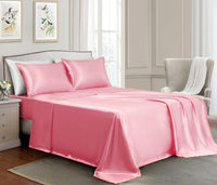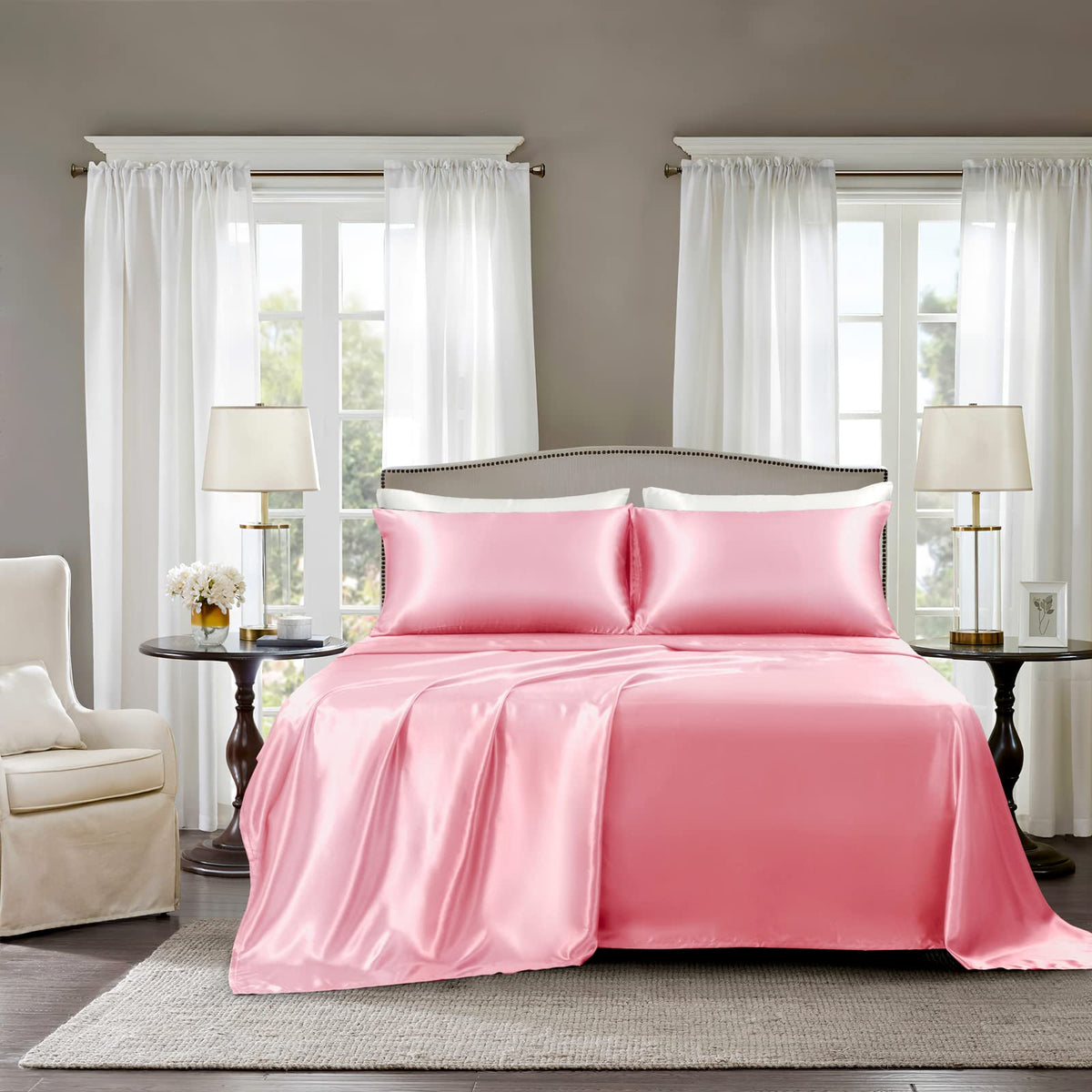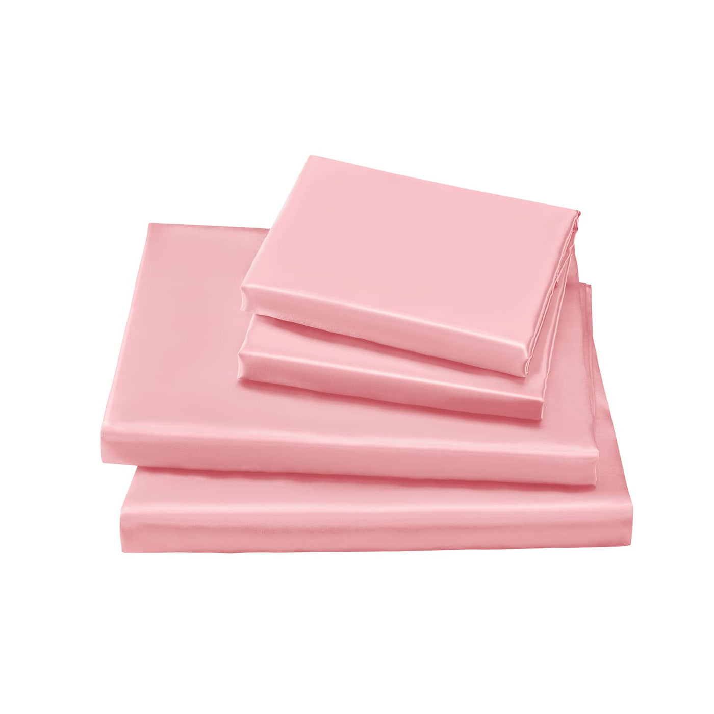 Golal Satin Sheets California King Size - 4 Pieces Luxury Silky Soft Bed Sheets, Wrinkle-Free Pink Satin Silk Sheet Set With 1 Deep Pocket Fitted Sheet, 1 Flat Sheet, 2 Pillow Cases