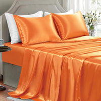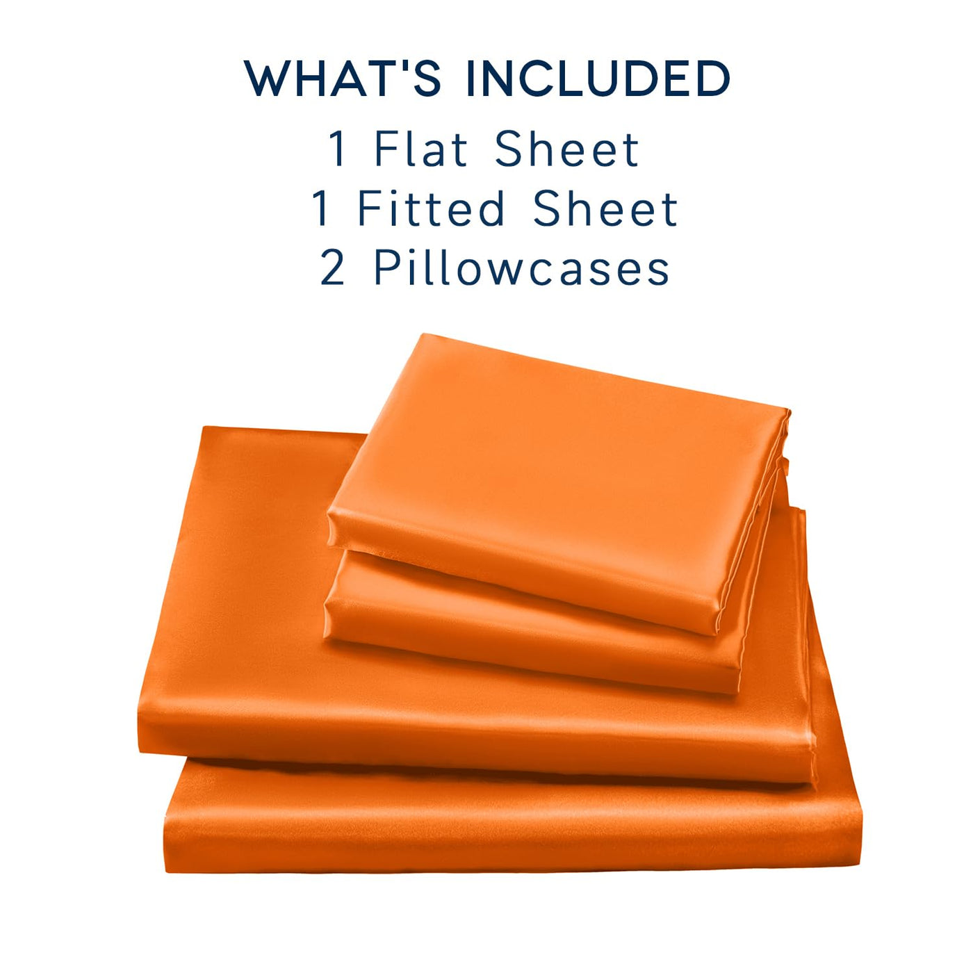 Golal Satin Sheets Full Size - 4 Pieces Luxury Silky Soft Bed Sheets, Wrinkle-Free Burnt Orange Satin Silk Sheet Set With 1 Deep Pocket Fitted Sheet, 1 Flat Sheet, 2 Pillow Cases
