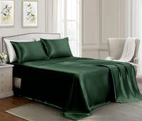 Golal Satin Sheets Full Size - 4 Pieces Luxury Silky Soft Bed Sheets, Wrinkle-Free Dark Green Satin Silk Sheet Set With 1 Deep P