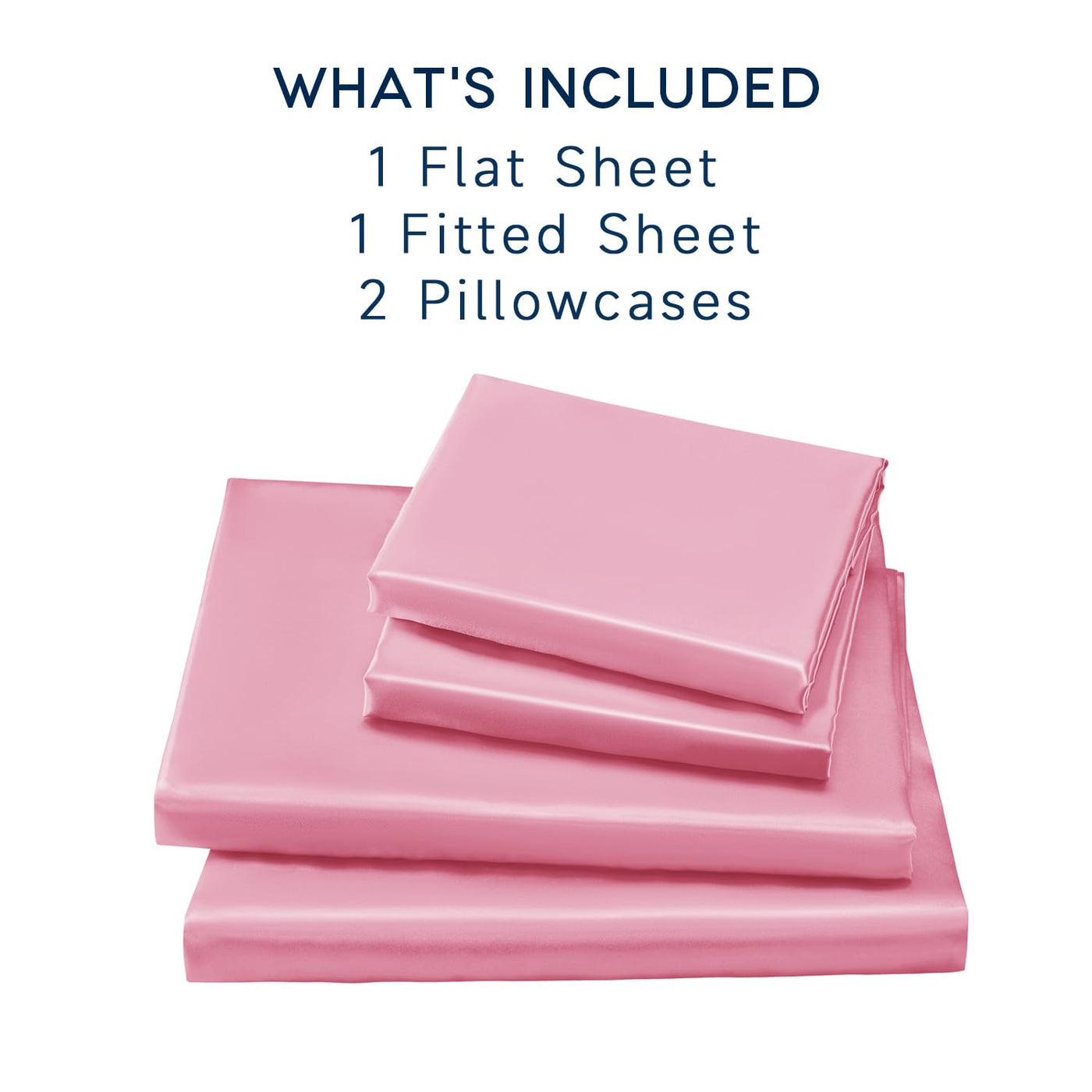 Golal Satin Sheets Full Size - 4 Pieces Luxury Silky Soft Bed Sheets, Wrinkle-Free Light Pink Satin Silk Sheet Set With 1 Deep Pocket Fitted Sheet, 1 Flat Sheet, 2 Pillow Cases