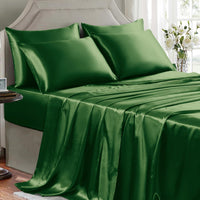 Golal Satin Sheets Full Size - 6 Pieces Luxury Silky Soft Bed Sheets, Wrinkle-Free Dark Green Satin Silk Sheet Set With 1 Deep P