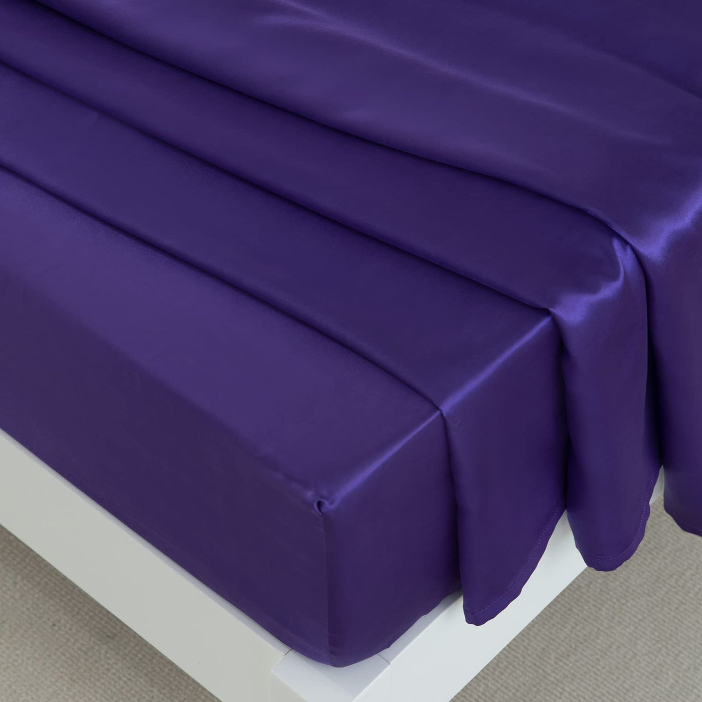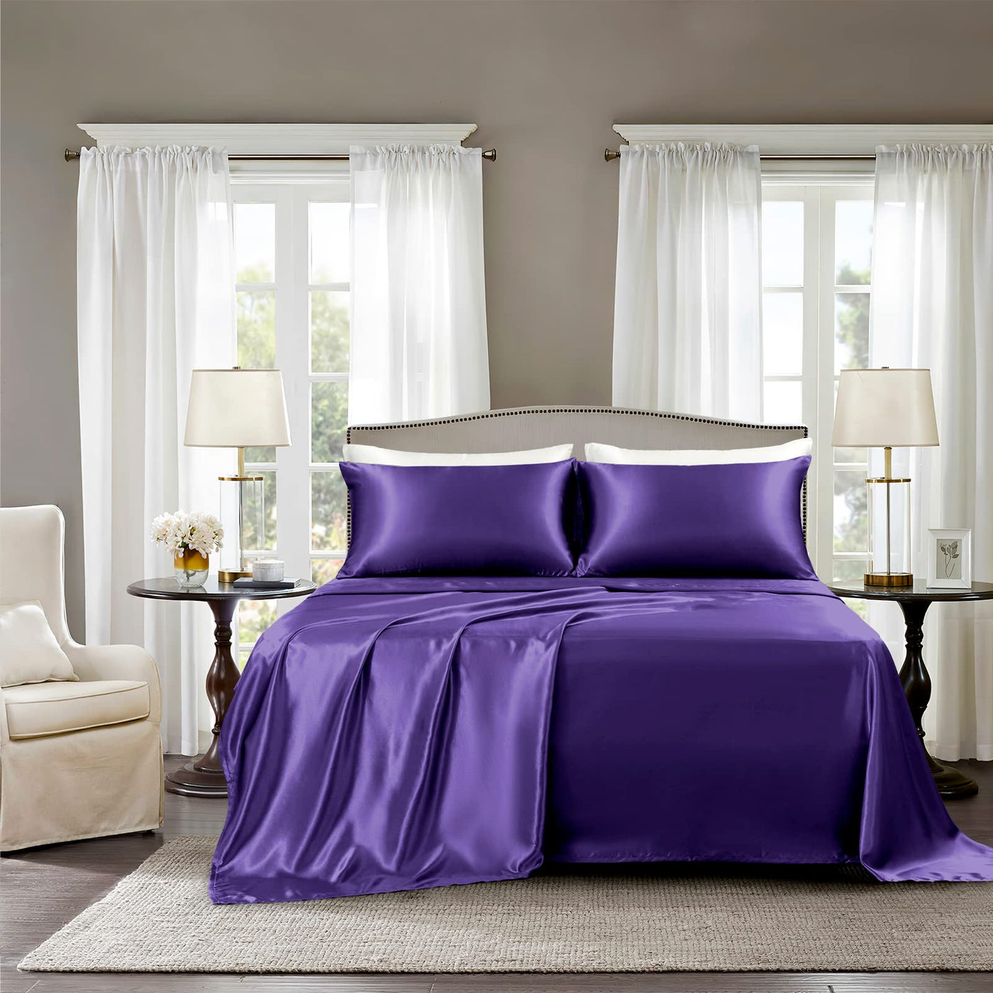 Golal Satin Sheets King Size - 4 Pieces Luxury Silky Soft Bed Sheets, Wrinkle-Free Dark Purple Satin Silk Sheet Set With 1 Deep Pocket Fitted Sheet, 1 Flat Sheet, 2 Pillow Cases