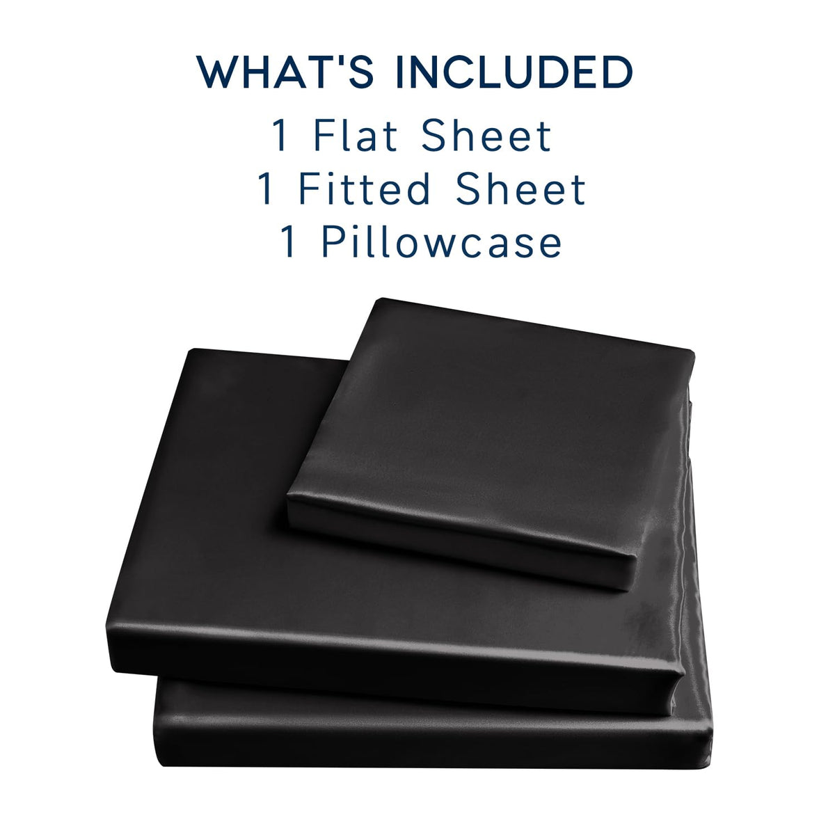 Golal Satin Sheets Twin Size - 3 Pieces Luxury Silky Soft Bed Sheets For Kids, Wrinkle-Free Black Satin Silk Sheet Set With 1 Deep Pocket Fitted Sheet, 1 Flat Sheet, 1 Pillow Case