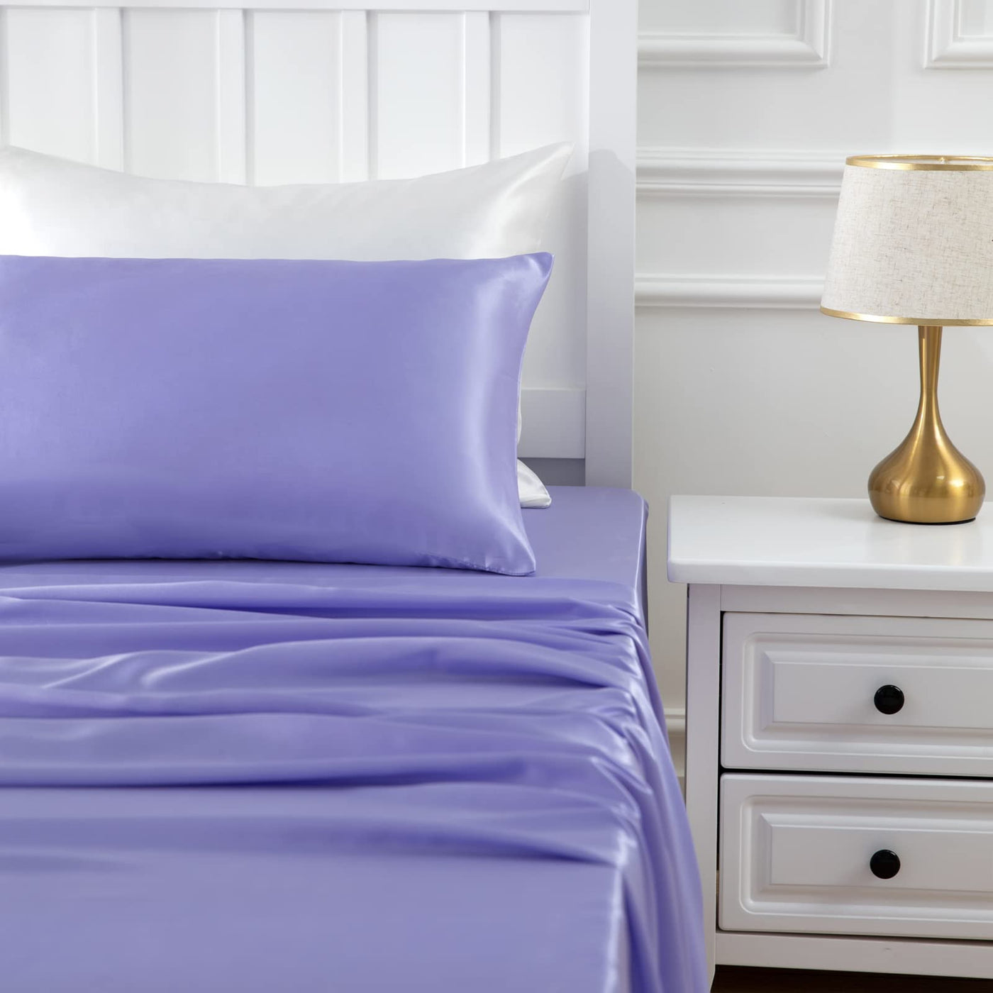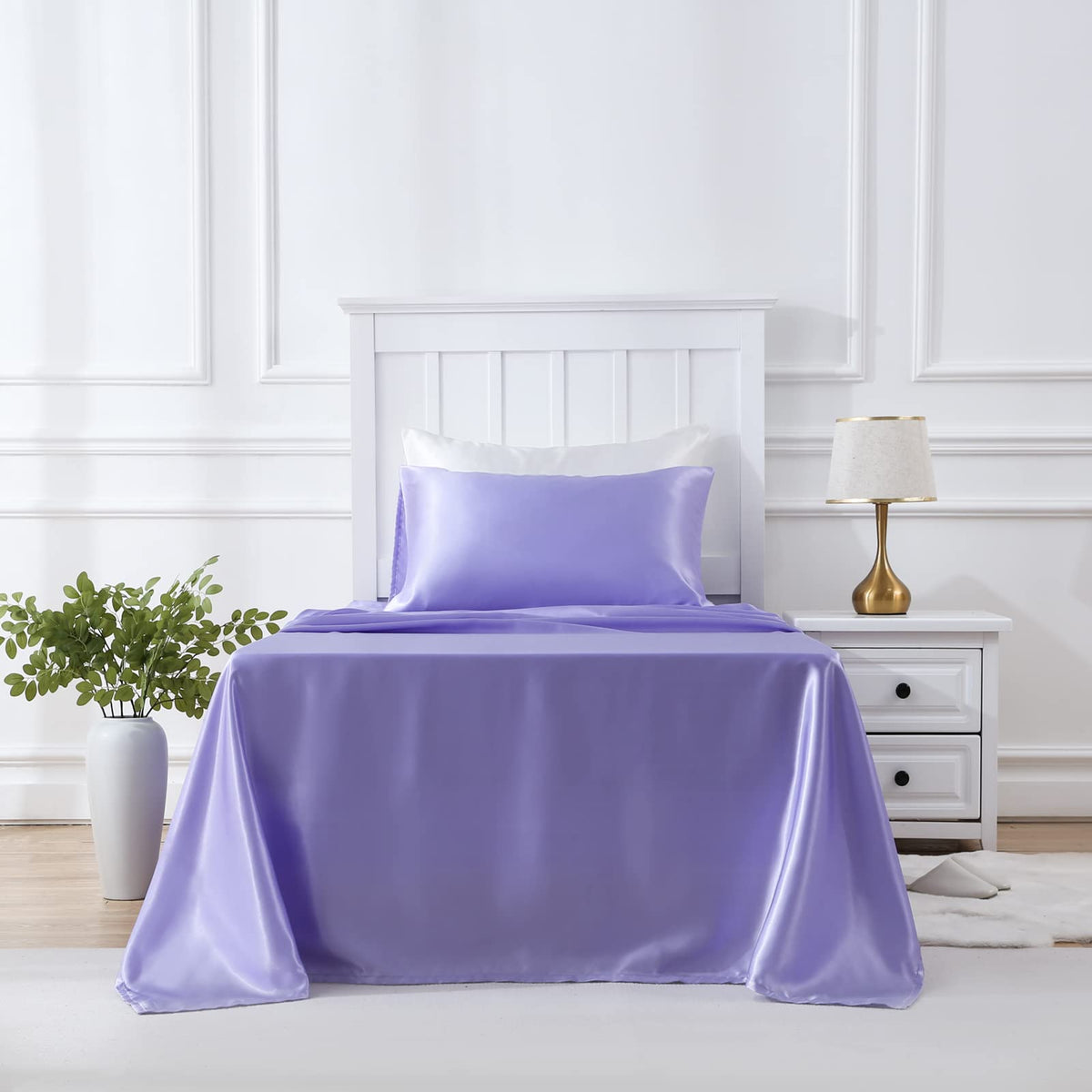 Golal Satin Sheets Twin Xl Size - 3 Pieces Luxury Silky Soft Bed Sheets, Wrinkle-Free Lavender Satin Silk Sheet Set With 1 Deep Pocket Fitted Sheet, 1 Flat Sheet, 1 Pillow Case