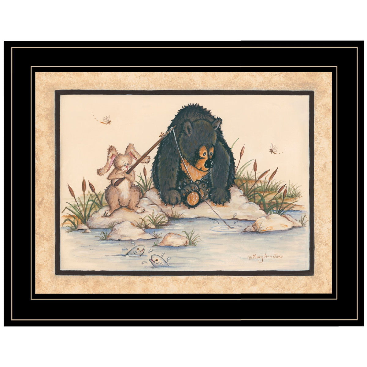 Bring some sizzle to your space with this eye-catching gone fishing 2 black framed print wall art. Add a sense of the woods, mountain or lodge lifestyle to your walls with this outdoorsy bear wall art. This print is a visual artistic expression that allows you to decorate your space in reproduced for you on paper, this hanging accent will be a trendy and fashionable way to dress your walls. Adding this hanging wall art to your space to make your room. more finished and attractive. Utilize this opportunity to create a focal point in the room with this wonderful wall decor option. 15' H x 19' W x 1' D