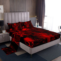 Gothic Skull Bed Sheets Red And Black Skeleton Sheet Set Twin For Boys Teens Men Women,Psychedelic Goth Skull Bedding Set Trippy
