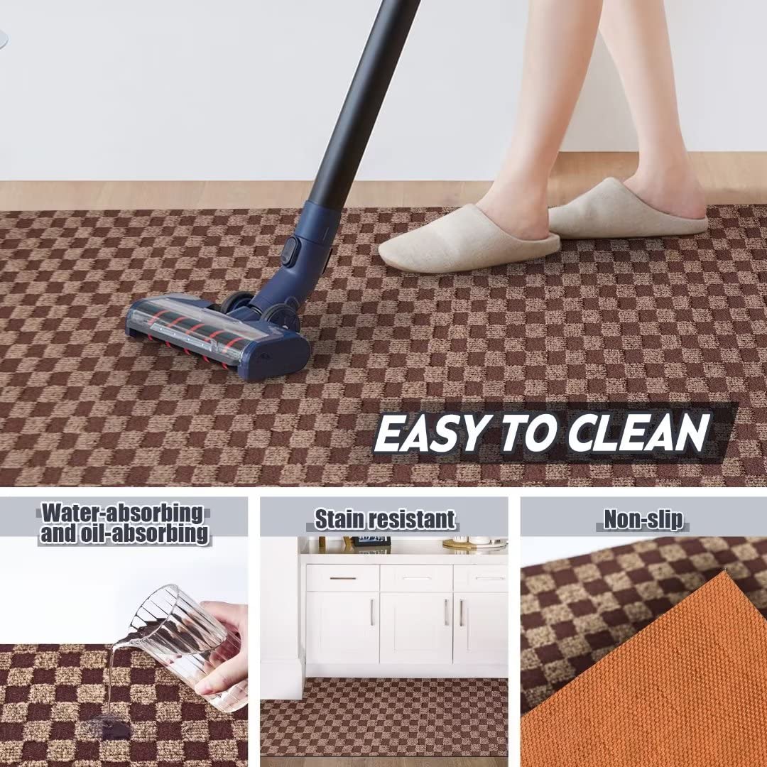 Q: What makes the material of this rug durable and long-lasting?A: The Gotohipi Runner Rug is made from high-density polyester, featuring a low pile design that resists fading and wear over time. Its front groove design effectively absorbs water and dust, making it easy to clean and maintain.