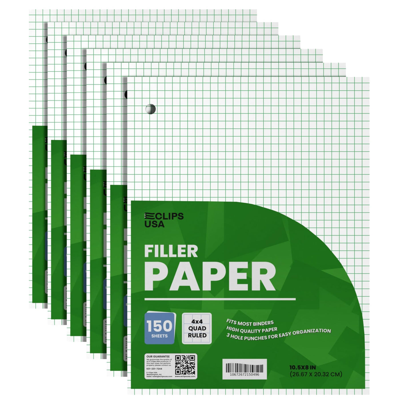 High Quality Graph Paper 900 Sheets Of Loose Leaf Graph Paper Product Details: 10.5? X 8? 56 Gsm Quad Ruled Graph Paper Pre Packaged 150 Sheets Each Fits In 3 Ring Binders 4 X 4 Squares Per Inch Doesn'T Bleed With Gel And Ink Pens Sized For Graphing, And X And Y Coordinates Whether You'Re Using Graph Paper Sheets For School, Home, Or Office Use, The Right Quality Supplies Can Make All The Difference When It Comes To Graph Paper Filler. That?S Why We Put Together This High Quality Graph Paper Sheets Bulk Set.