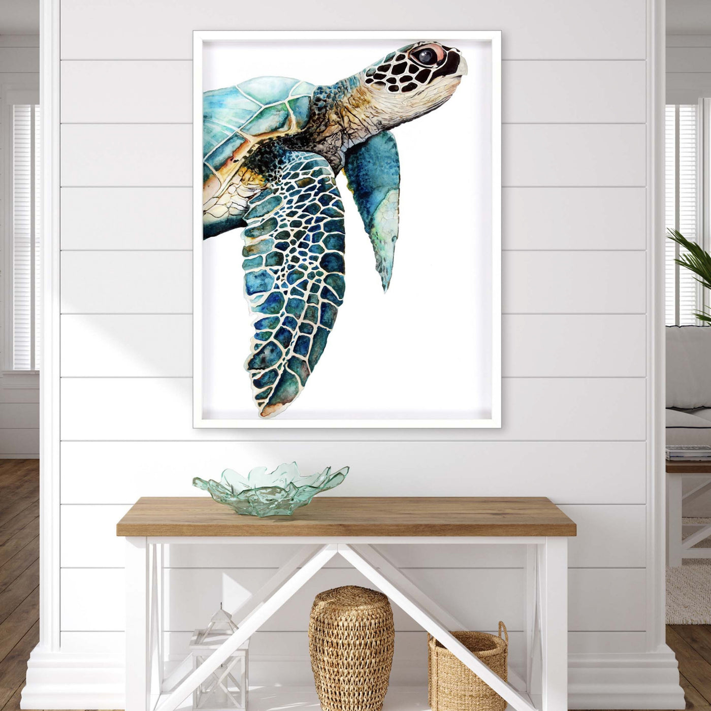 Great Sea Turtle White Print Shadowbox Framed Wall Art