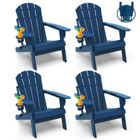 Greenvines Folding-Adirondack-Chairs-Set-Of-4 | Hdpe Plastic | Fire Pit Chair | All Weather | Cup Holder | Blue | For Deck Backyard Patio Outdoor Garden