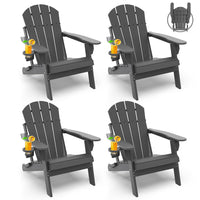 Greenvines Folding-Adirondack-Chairs-Set-Of-4 | Hdpe Plastic | Fire Pit Chair | All Weather | Cup Holder | Grey | For Deck Backyard Patio Outdoor Garden