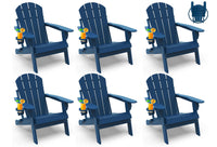 Greenvines Folding-Adirondack-Chairs-Set-Of-6 | Hdpe Plastic | Fire Pit Chair | All Weather | Cup Holder | Blue | For Deck Backyard Patio Outdoor Garden