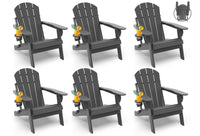 Greenvines Folding-Adirondack-Chairs-Set-Of-6 | Hdpe Plastic | Fire Pit Chair | All Weather | Cup Holder | Grey | For Deck Backyard Patio Outdoor Garden