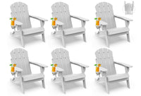 Greenvines Folding-Adirondack-Chairs-Set-Of-6 | Hdpe Plastic | Fire Pit Chair | All Weather | Cup Holder | White | For Deck Backyard Patio Outdoor Garden
