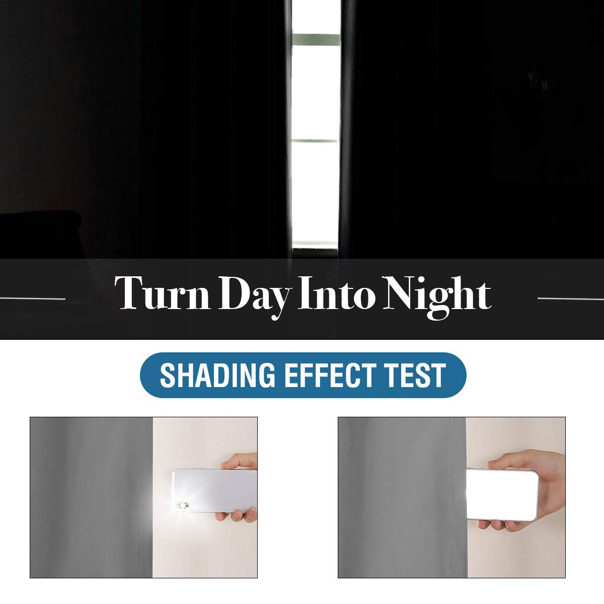 These muti- functional curtains are made of durable blackout fabric, feature with white backing for 100% blackout effect.