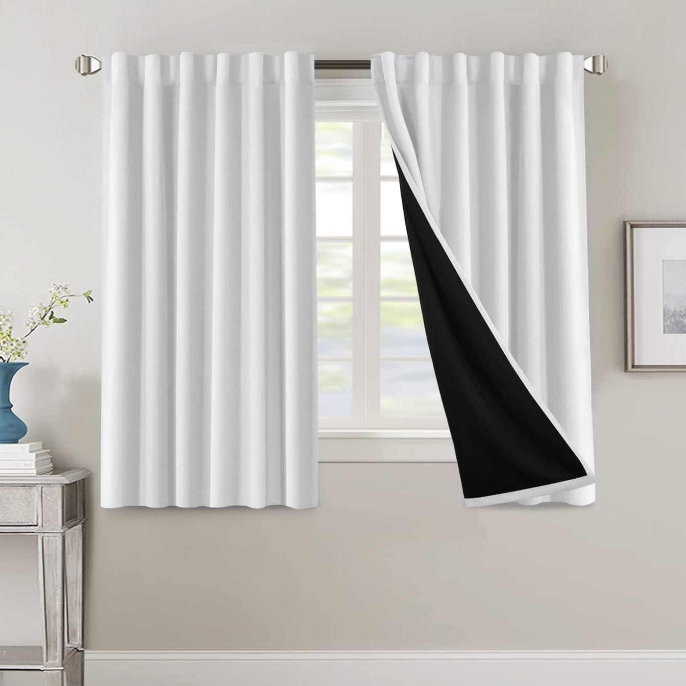 H.Versailtex 100% Blackout Curtains For Bedroom With Black Liner Full Room Darkening Curtain 54 Inch Long Thermal Insulated Back