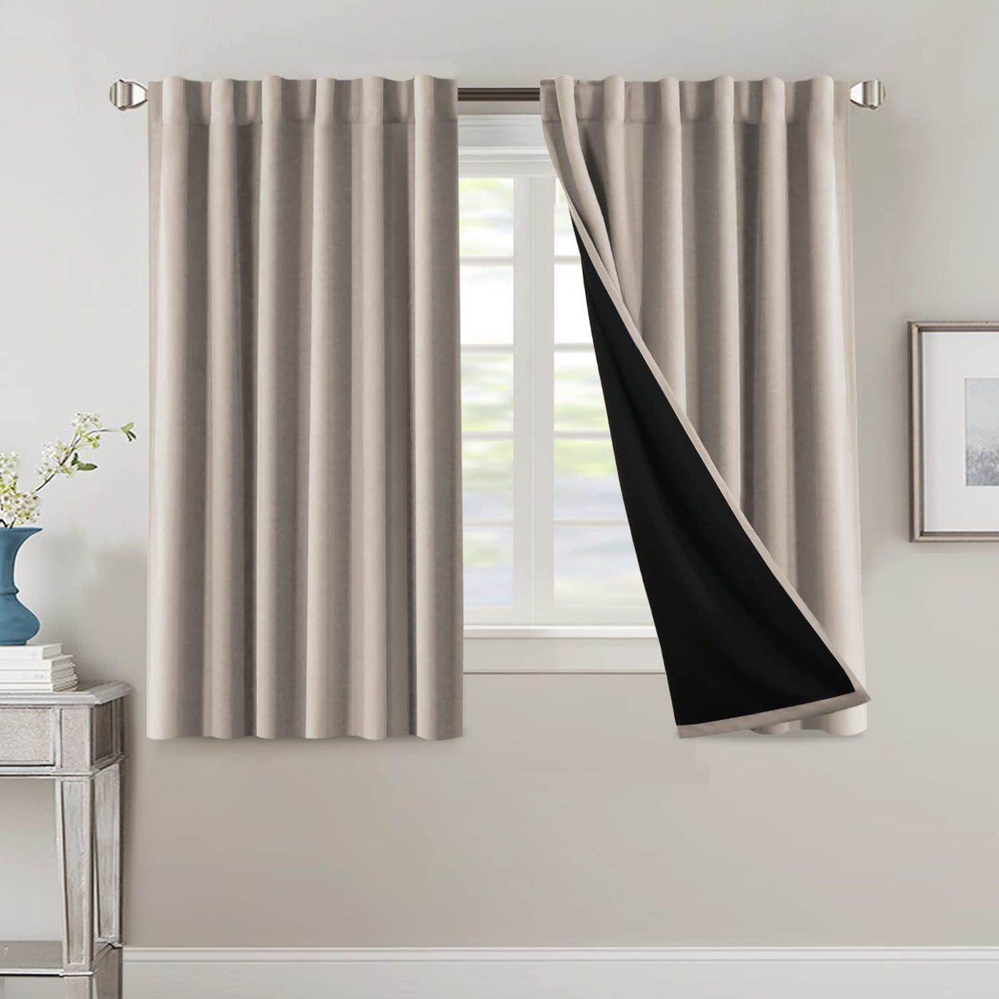 H.Versailtex 100% Blackout Curtains For Bedroom With Black Liner Full Room Darkening Curtains 54 Inch Long Thermal Insulated Bac