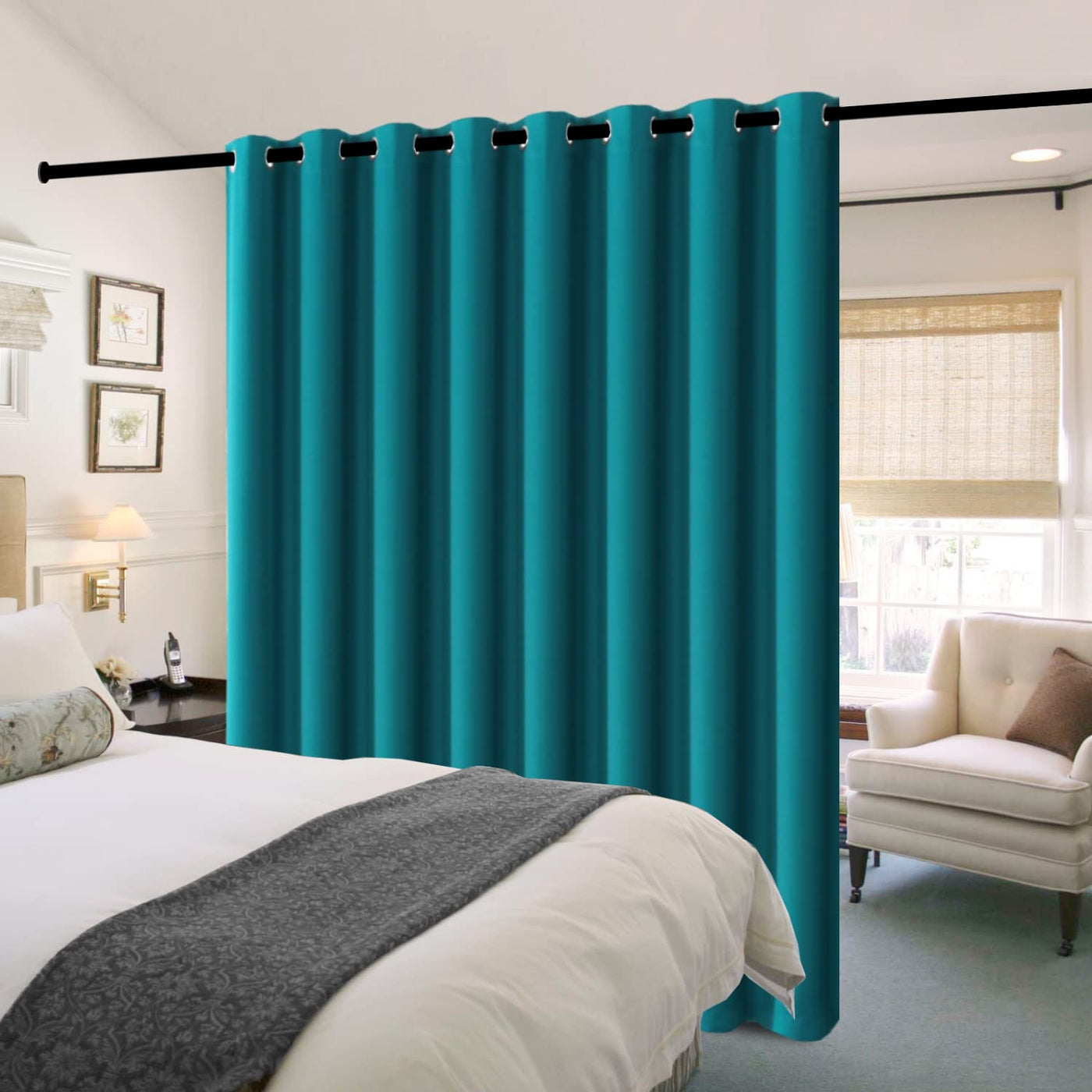 H.Versailtex 100% Blackout Patio Curtains Thermal Insulated Curtains For Sliding Door Extra Wide Window Panels Full Light Blocking Grommet Curtains With Black Liner, W100 X L96 Inch - Turquoise Blue