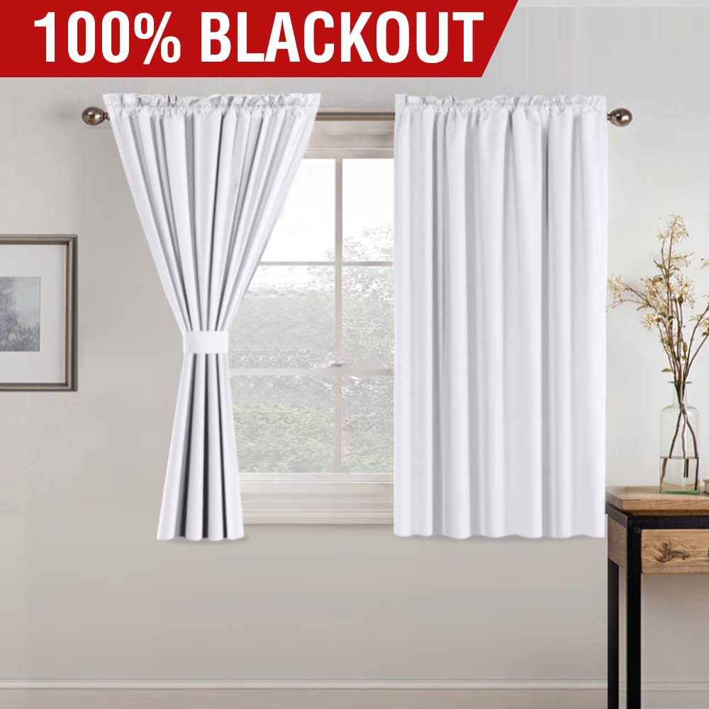 H.Versailtex 100% Blackout White Curtains 45 Inches Long Full Light Blocking Curtain Draperies For Bedroom Living Room Thermal Insulated Functional Soft Thick Window Treatment Set Of 2 Panels